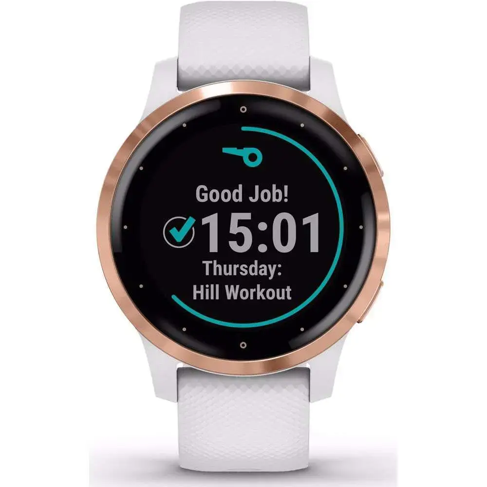 Het nieuwe Garmin Vivoactive 4s Sporthorloge biedt nog meer functies dan zijn voorganger de 3 aldeed. Deze vierde telg in de Vivoactive serie biedt een compleet plaatje over je gezondheid. Zo registreert het horloge dankzij functies als Body battery en Pulse Ox je Stress, energie, slaapritme, hartslag, hydratie en zelfs je ademhaling. Kortom je volledige gezondheid kun je 24/7 monitoren. Naast de gezondheid worden ook al je activiteiten en energieverbruik gemeten. Ideaal voor de gezondheidsfreaks dus! Maar ook de doorgewinterde sporter zal zeer tevreden zijn met dit nieuwe sporthorloge van Garmin. Deze heeft namelijk 20 voor geïnstalleerde sportprofielen zoals fietsen, hardlopen, roeien, zwemmen, krachttraining, Yoga, Golf, Pilates en meer. De fitnessoefeningen worden daarbij ook nog eens geanimeerd op het scherm weergegeven. Ook is er een automatische herhaling instelling voor de fitnessoefeningen. De ingebouwde Garmin coach heeft voorgeprogrammeerde trainingsplannen voor 5K, 10K en de halve marathon, deze passen zich automatisch aan, aan jouw voortgang. Ook wordt je fitnessniveau gemeten aan de hand van je VO2-max en je fitnessleeftijd. Voor diegene die zich op onbekende paden wilt begeven, heeft dit horloge ook nog een thuisbreng functie. Zo kom je altijd weer thuis, ongeacht of je een keer een gewaagde afslag neemt. Deze S versie van de vivoactive heeft een iets slanker ontwerpt, smallere polsband en een kleiner display, waardoor deze geschikter is voor kleinere polsen. Hierdoor heeft het horloge wel een iets kortere batterijduur.