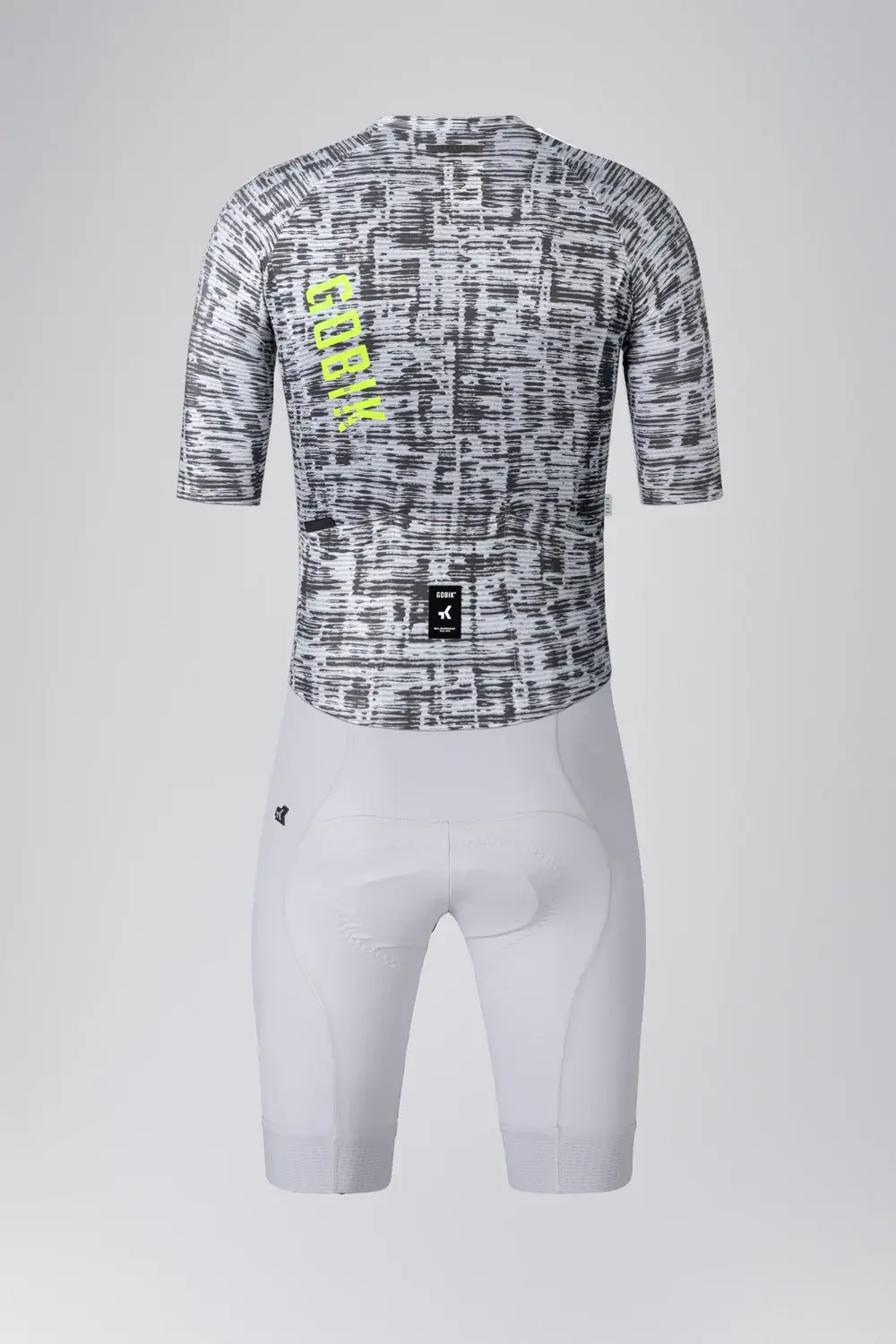 Het Gobik Brooklynn Emboss K10 Aerosuit is de ideale speedsuit voor jouw snelle ritten of tijdrit! Het pak bestaat uit een eenheid van de Matt fietsbroek en het nieuwste CX Pro Solid fietsshirt van Gobik. De bovenzijde is erg rekbaar en licht van gewicht. De bovenzijde is voorzien van een rits en een strak aansluitende hals. Het resultaat hiervan is een bovenzijde die je alle nodige bewegingsvrijheid biedt. Dankzij de drie steekzakken op de onderrug kan je nog wat extra proviand meenemen voor onderweg. Deze is de K10 variant en extreem comfortabel. Daardoor is dit pak niet alleen voor snelle ritten geschikt, maar ook voor lange dagen op de fiets.