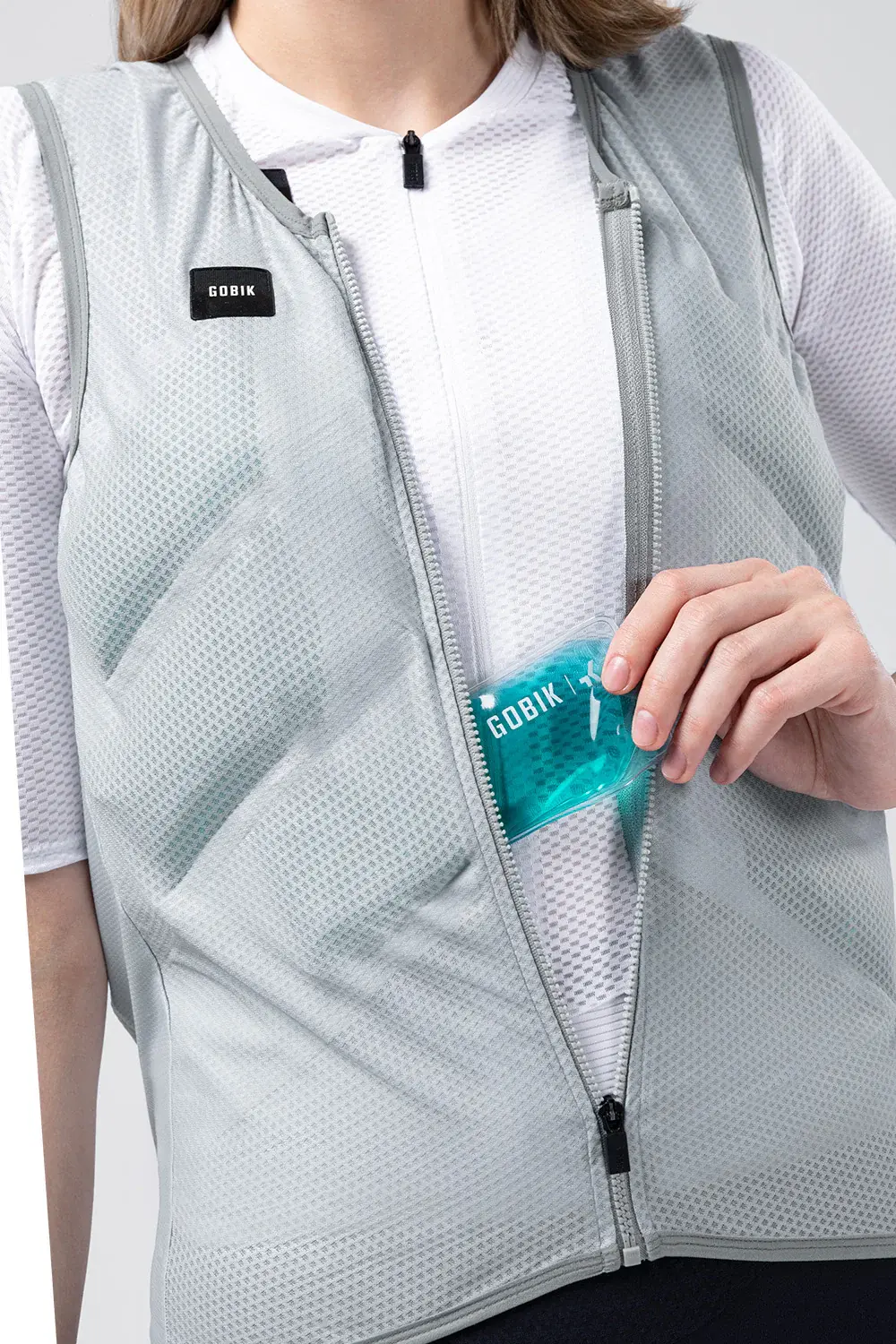 Verleg je grenzen in extreme hitte met het Gobik Cooling Iceflow Vest. Dit innovatieve koelvest, ontwikkeld op verzoek van World Tour teams, is je geheime wapen tegen thermische stress. Het helpt je lichaamstemperatuur binnen een gezonde marge te houden, waardoor je prestaties verbetert wanneer het kwik stijgt. De basis is een lichtgewicht open mesh-stof die zweet optimaal afvoert. De magie zit aan de binnenkant: een systeem van 14 nauwkeurig geplaatste compartimenten, gevuld met de meegeleverde koel-gel packs. Deze packs zorgen voor een actieve koeling die 45 tot 60 minuten aanhoudt. Ideaal voor een pre-competitie warming-up of tijdens een intensieve indoortraining. Dankzij de rits aan de voorzijde trek je het vest razendsnel aan en uit.