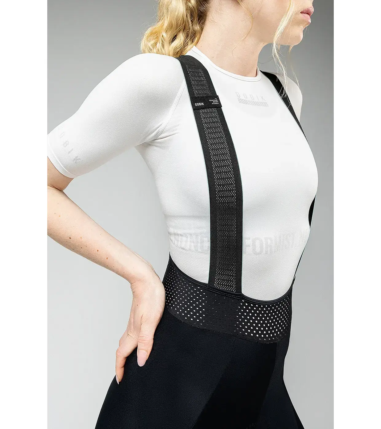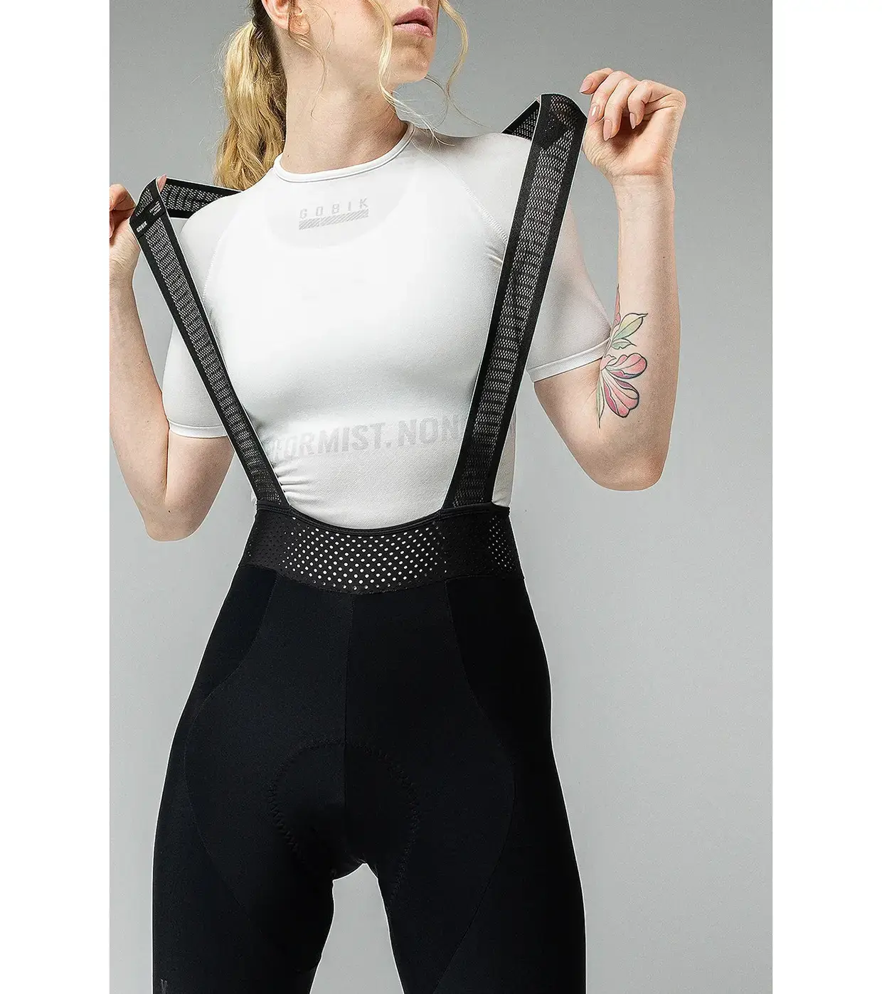 De Gobik Limited 6.0 Fietsbroek is de trainingsfietsbroek van Gobik. Blijf jij doorfietsen in de winter, dan is deze broek wat voor jou. Bij temperaturen tussen de 0 en 15 graden kun je gewoon lange ritten maken. En dat kan ook nog eens comfortabel, want de broek is voorzien van een K9 zeem. op dit 11 mm dikke zeem kun je tot wel 8 uur in het zadel blijven. Het extreem vlakke design is speciaal ontwikkeld voor de vrouwelijke anatomie. Het zeem voelt erg zacht aan op de huid. De straps van de broek hebben veel kleine gaatjes om de stof beter te laten ademen en het gewicht en de druk van het elastiek zo gelijk mogelijk te verdelen over het lichaam. Aan de onderkant van de benen zorgende reflectieve elementen voor extra zichtbaarheid op de donkere dagen. Hier is ook een siliconen elastiek aangebracht om de broek goed aan te laten sluiten op de huid en opkrullen van de stof te voorkomen. Hij is ontworpen voor topprestaties. De geïntergreerde RAINDLAB-technologie biedt bescherming tegen wind en lichte regen, en zorgt voor superieure thermische isolatie. De bretels zijn volledig vlak en verdelen zo de druk op een gelijkmatige manier over je rug, borst en schouders. De Taille is ten opzicht van de 4.0 Fietsbroek verbeterd door hem hoger en comofortabeler te maken.