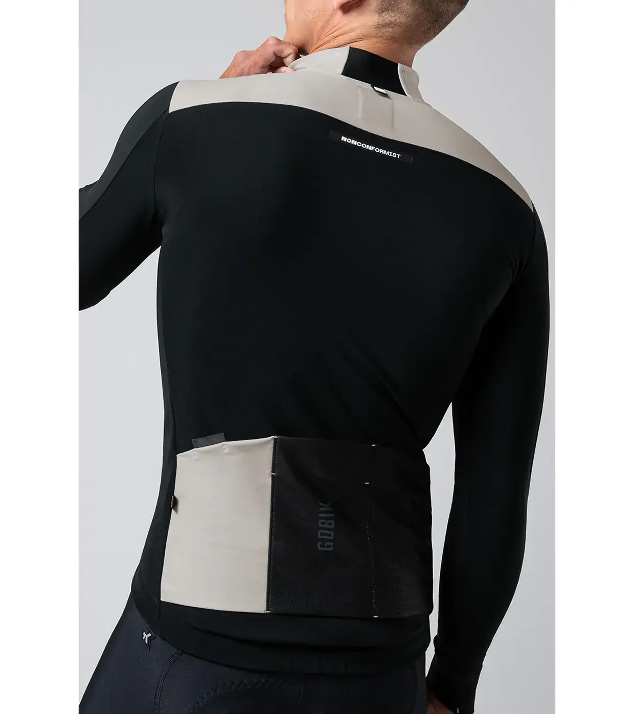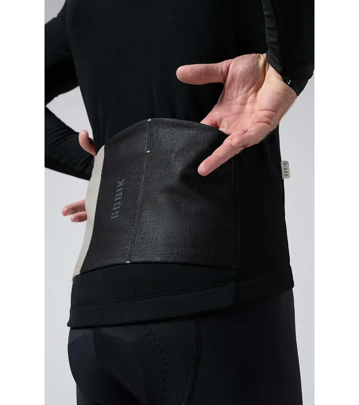 Het Gobik Mist Fietsjack houdt je droog bij een miezerbui en biedt daarnaast voldoende isolatie op een frisse herfstdag. Een combinatie van diverse materialen met een DWR-behandeling zorgt ervoor dat regendruppels zo van de stof parelen. De kraag is licht verhoogd voor extra comfort en bescherming tegen de kou. Aan de achterzijde zijn drie speciaal gevormde steekzakken aangebracht waar je ook tijdens het fietsen gemakkelijk bij kunt voor het opbergen van je essentials.