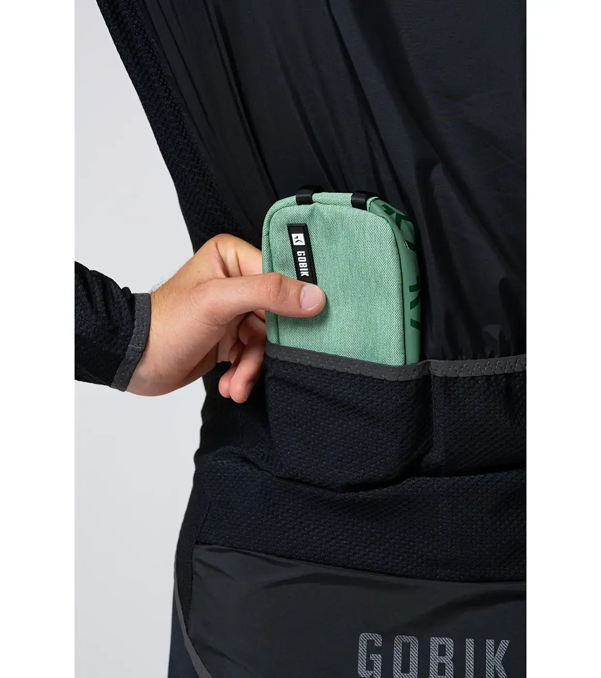 De Essential 2.0 Telefoonhoes van Gobik zorgt ervoor dat je je mobiel veilig kan meenemen op je weg. Je mobiel onbeschermd in je achterzak stoppen is niet zo handig. Zweet of regenwater kan in het toestel terecht komen en hij kan zomaar uit je zak vallen. Gobik heeft een handige etui ontworpen waar je niet alleen je mobiel in kunt stoppen, maar ook bijvoorbeeld een ID- of bankpasje en wat contant geld. Klein gereedschap zoals een inbussleutel of een paar bandenlichters kun je er ook makkelijk in kwijt. De stof is water afstotend, zodat je telefoon niet nat wordt. Bovendien biedt de zachte stof extra bescherming voor als je mobiel uit je achterzak valt. De telefoonhoes past gemakkelijk in een achterzakje, waardoor je nog twee zakjes over hebt voor voeding en andere spullen! Het tasje wordt afgesloten met een ritssluiting. Deze 2.0 versie heeft een nieuwe look ten opzichte van zijn voorganger en er zijn kleine handvatjes toegevoegd om hem gemakkelijk uit je achterzak te pakken.