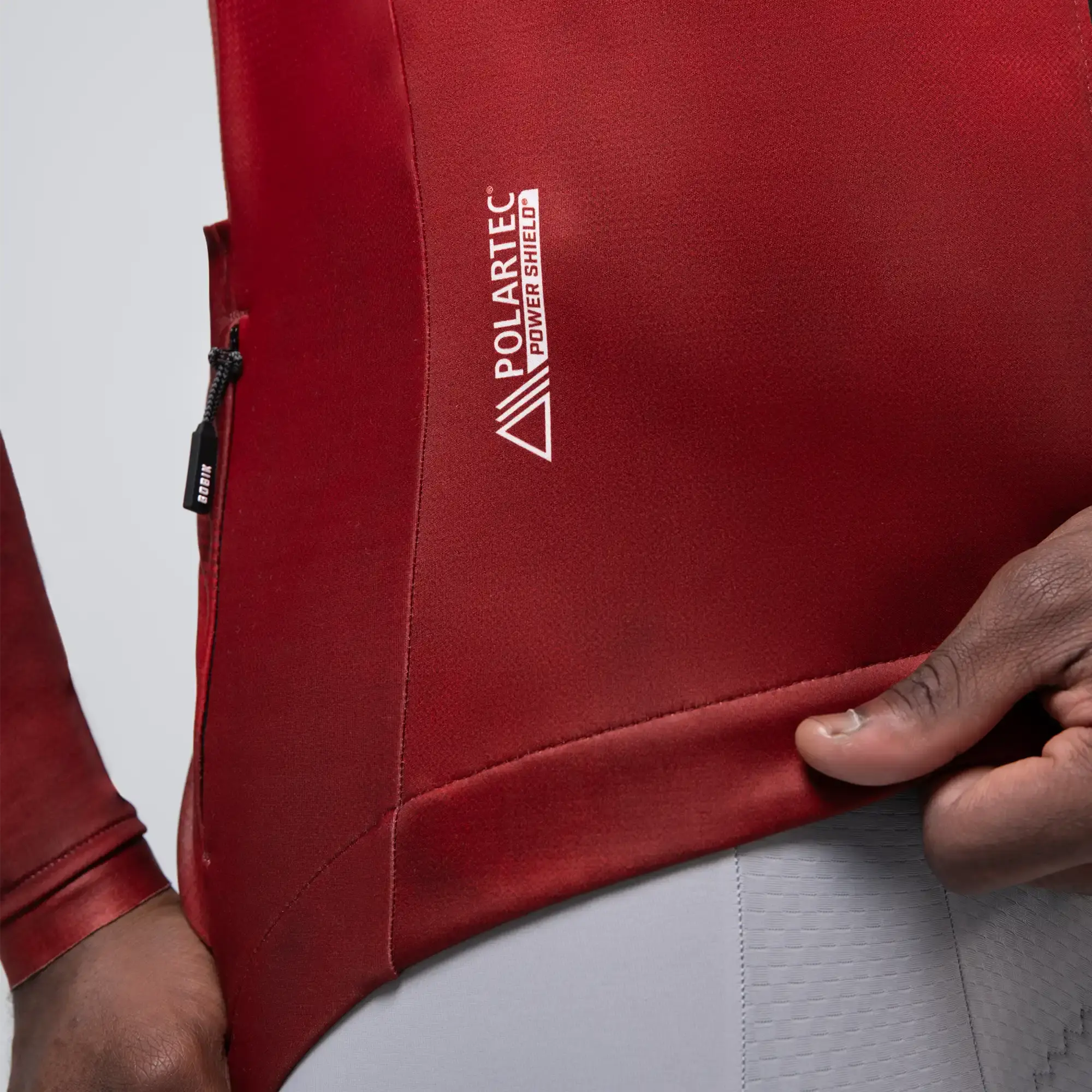 Voorpaneel met Polartec Power Shield™ Pro: 3-laags, winddicht, waterbestendig (10.000mm) en zeer ademend (12.000g/m²/24u)