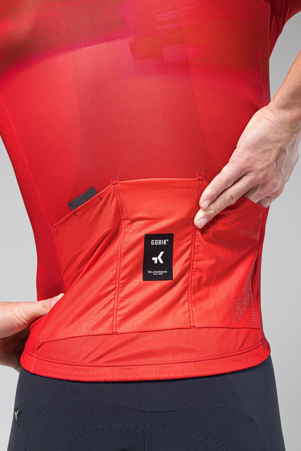 Het Gobik Stark Fietsshirt met korte mouwen is speciaal ontworpen voor de zomer. Alles is in het werk gesteld om jouw zoveel mogelijk ventilatie te bieden. Zo zijn de mouwen geperforeerd en ademt de stof uitstekend. Ook wordt vocht zo snel mogelijk afgevoerd zodat je huid altijd comfortabel en droog blijft. Dit shirt is lekker dun en heeft een regular parvorm. Dit maakt het vooral geschikt voor echt recreatieve tochten. Aan de achterzijde zijn drie speciaal gevormde steekzakken aangebracht, die schuin aflopen. Daardoor kan je er gemakkelijk bij. De GRS-technologie (Gobik Retention System) zorgt ervoor dat je meest waardevolle spullen zeer veilig zijn opgeborgen. De siliconen gripper aan de onderzijde is breder gemaakt, waardoor het shirt perfect blijft zitten en dus nooit zal wapperen.