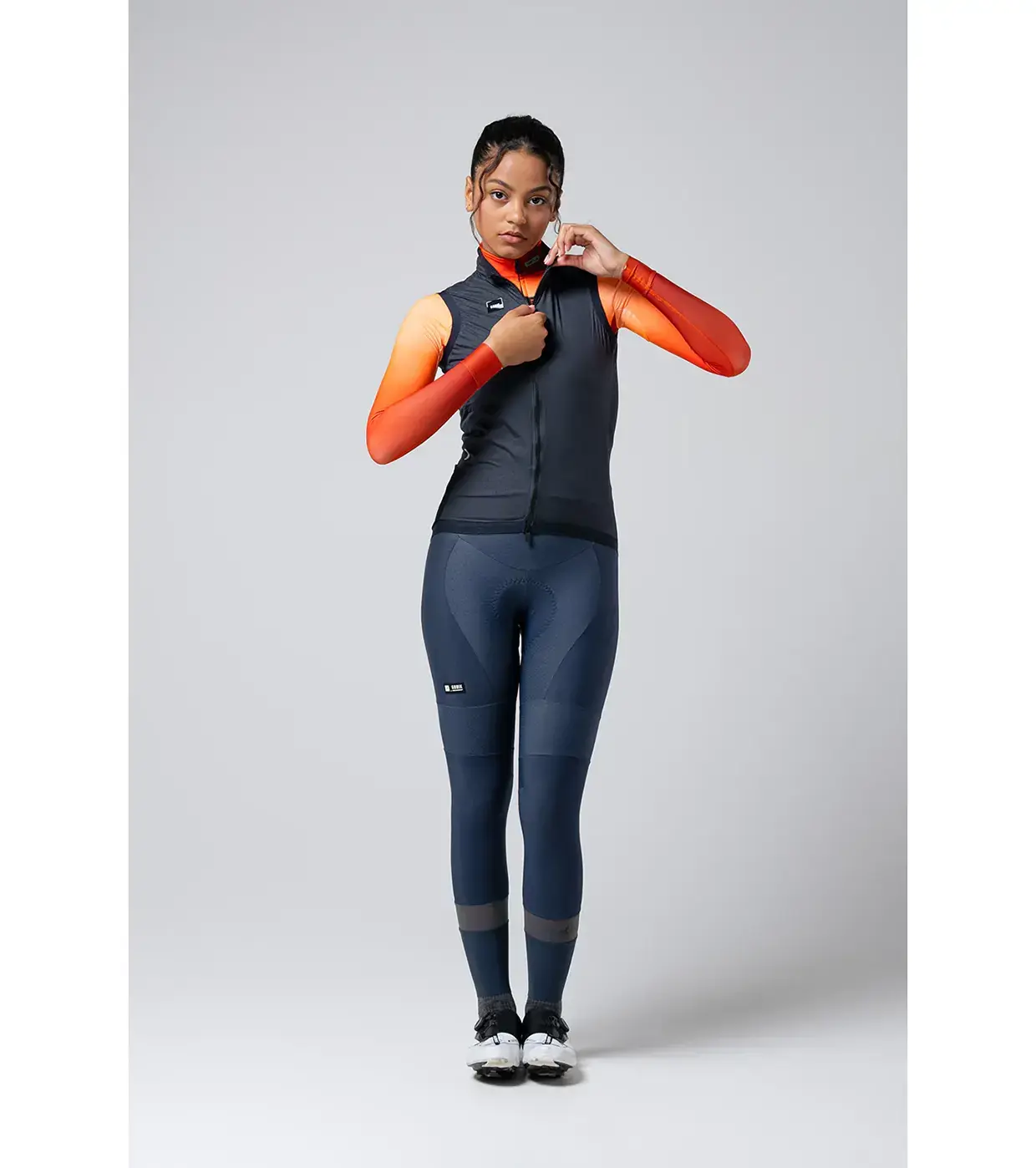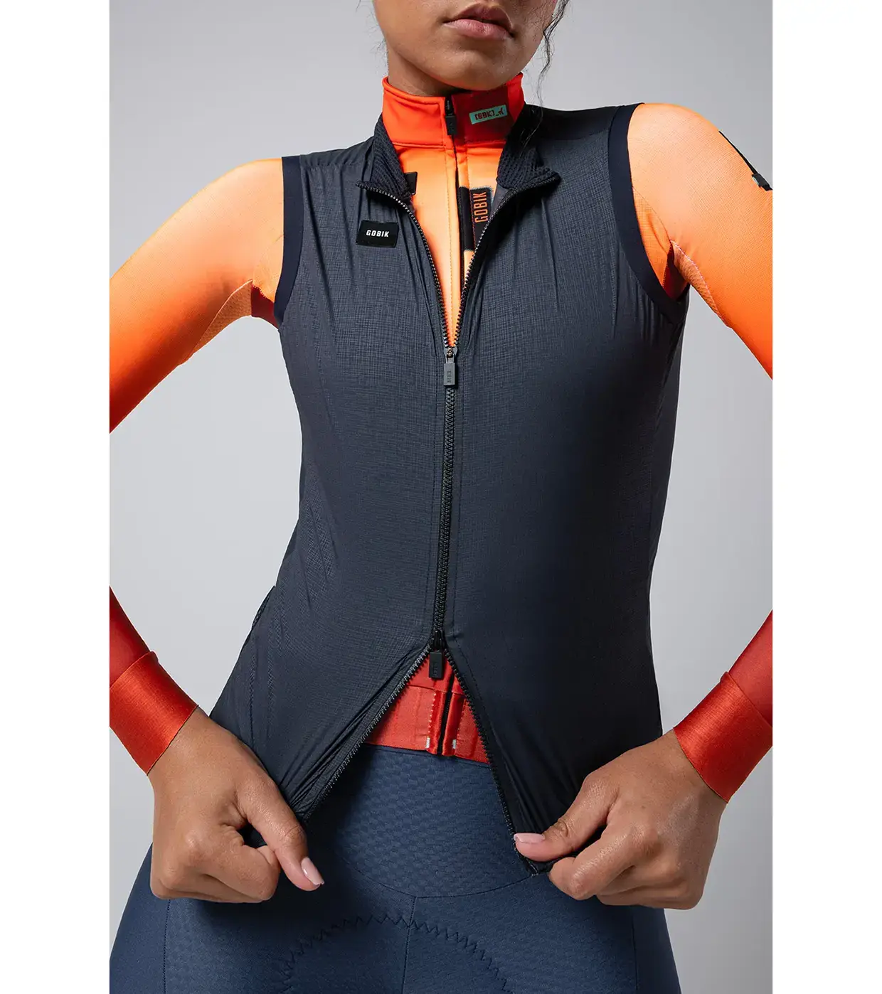 Dit Gobik Vector 2.0 Windvest is een opvouwbaar en lichtgewicht oplossing voor wanneer je de polders in gaat op dagen met veel wind. Het vest zit redelijk strak en wappert niet, waardoor het de luchtweerstand amper verhoogt en tegelijkertijd zeer stijlvol oogt. De combinatie van nylon en elastaan zorgt voor een elastische rekbaarheid en effectieve bescherming tegen de wind. Het vest is het beste te gebruiken in het voorjaar of najaar als er een frisse wind staat of wanneer je van een berg afdaalt. De volledige rits in twee richtingen zorgt ervoor dat je gemakkelijk voor extra ventilatie kunt zorgen. Mocht de mesh stof op de achterzijde niet voor voldoende verkoeling zorgen. Op de zijkant zit nog een mesh zakje waardoor je ook als je erg moe bent nog gemakkelijk bij je sportvoeding kunt. Ook kan je in dit zakje het windvest zelf opvouwen.
