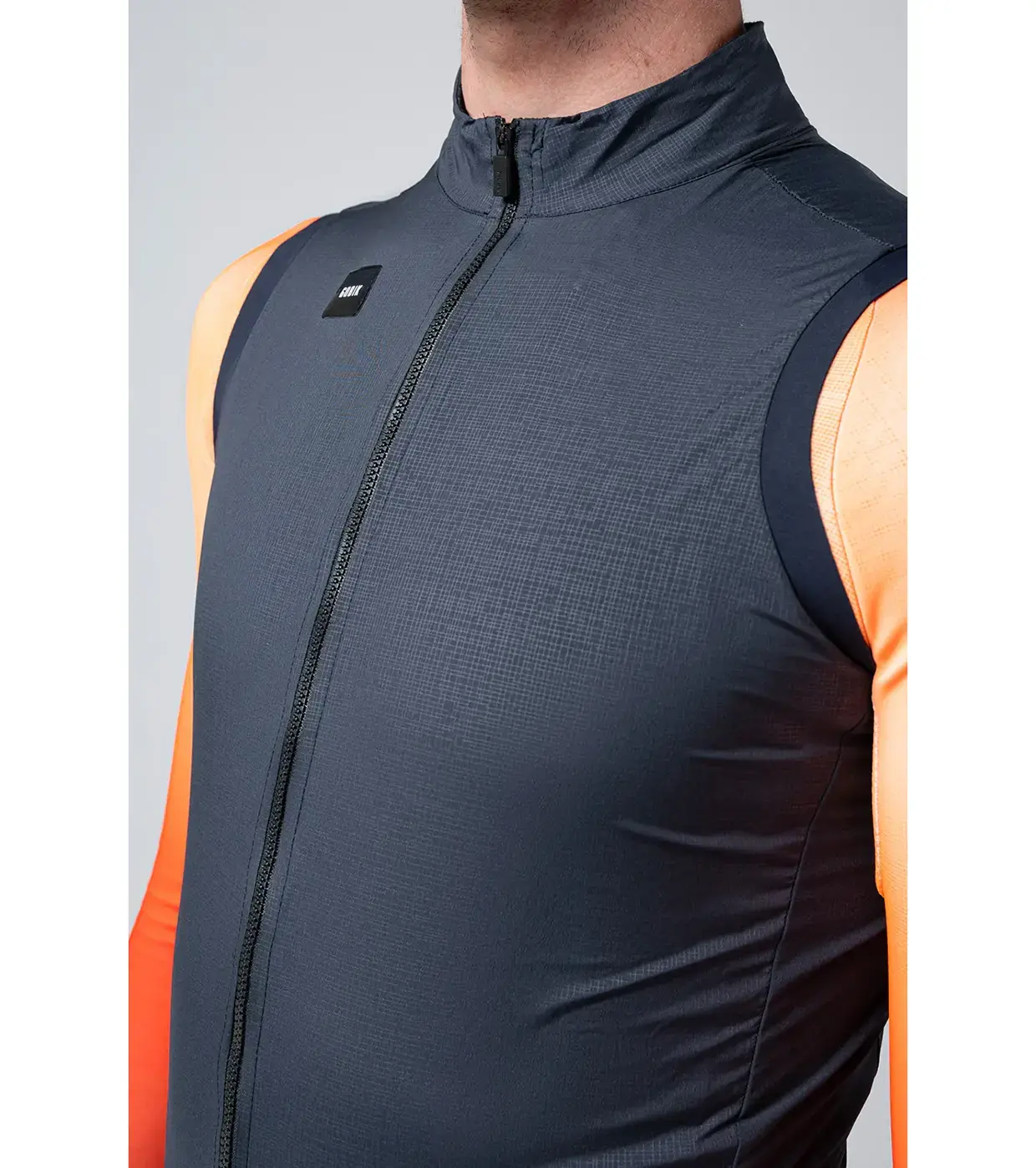 Dit Gobik Vector 2.0 Windvest is een opvouwbaar en lichtgewicht oplossing voor wanneer je de polders in gaat op dagen met veel wind. Het vest zit redelijk strak en wappert niet, waardoor het de luchtweerstand amper verhoogt en tegelijkertijd zeer stijlvol oogt. De combinatie van nylon en elastaan zorgt voor een elastische rekbaarheid en effectieve bescherming tegen de wind. Het vest is het beste te gebruiken in het voorjaar of najaar als er een frisse wind staat of wanneer je van een berg afdaalt. De volledige rits in twee richtingen zorgt ervoor dat je gemakkelijk voor extra ventilatie kunt zorgen. Mocht de mesh stof op de achterzijde niet voor voldoende verkoeling zorgen. Op de zijkant zit nog een mesh zakje waardoor je ook als je erg moe bent nog gemakkelijk bij je sportvoeding kunt. Ook kan je in dit zakje het windvest zelf opvouwen.
