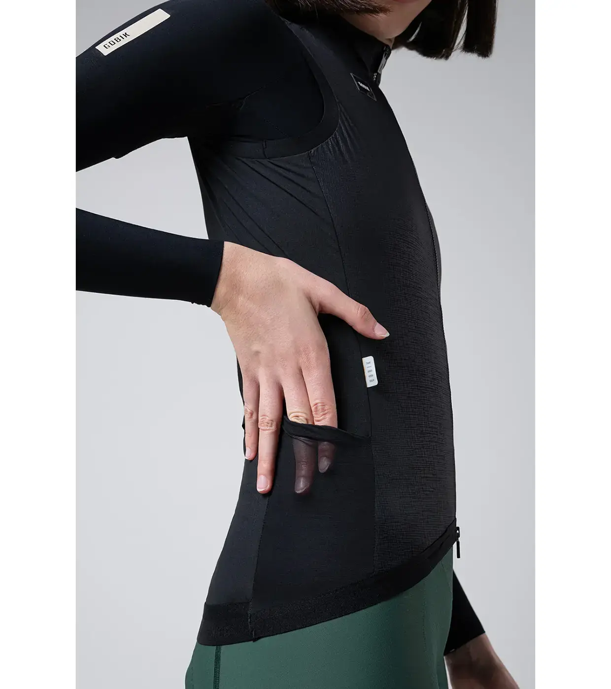 Dit Gobik Vector 2.0 Windvest is een opvouwbaar en lichtgewicht oplossing voor wanneer je de polders in gaat op dagen met veel wind. Het vest zit redelijk strak en wappert niet, waardoor het de luchtweerstand amper verhoogt en tegelijkertijd zeer stijlvol oogt. De combinatie van nylon en elastaan zorgt voor een elastische rekbaarheid en effectieve bescherming tegen de wind. Het vest is het beste te gebruiken in het voorjaar of najaar als er een frisse wind staat of wanneer je van een berg afdaalt. De volledige rits in twee richtingen zorgt ervoor dat je gemakkelijk voor extra ventilatie kunt zorgen. Mocht de mesh stof op de achterzijde niet voor voldoende verkoeling zorgen. Op de zijkant zit nog een mesh zakje waardoor je ook als je erg moe bent nog gemakkelijk bij je sportvoeding kunt. Ook kan je in dit zakje het windvest zelf opvouwen.