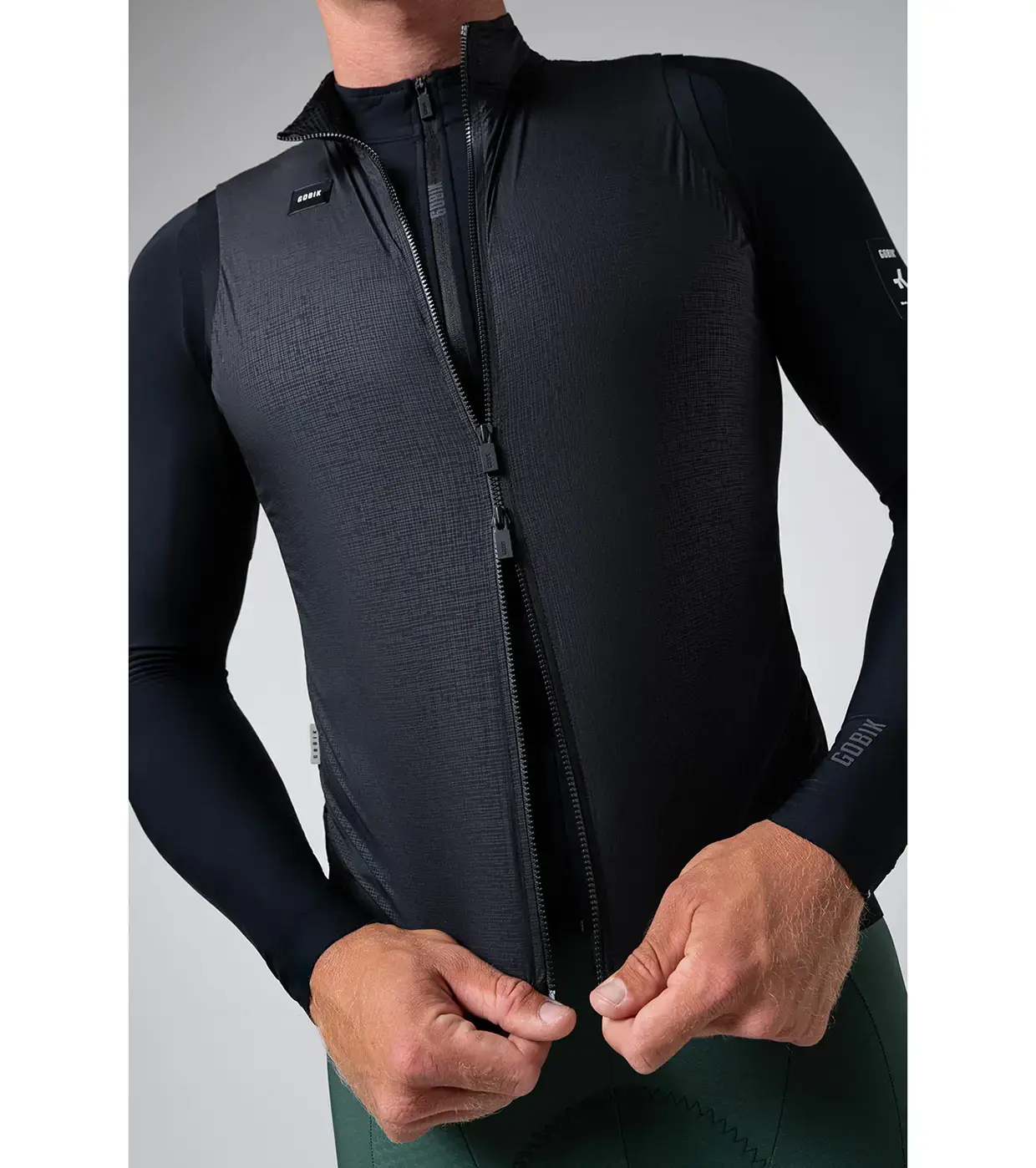 Dit Gobik Vector 2.0 Windvest is een opvouwbaar en lichtgewicht oplossing voor wanneer je de polders in gaat op dagen met veel wind. Het vest zit redelijk strak en wappert niet, waardoor het de luchtweerstand amper verhoogt en tegelijkertijd zeer stijlvol oogt. De combinatie van nylon en elastaan zorgt voor een elastische rekbaarheid en effectieve bescherming tegen de wind. Het vest is het beste te gebruiken in het voorjaar of najaar als er een frisse wind staat of wanneer je van een berg afdaalt. De volledige rits in twee richtingen zorgt ervoor dat je gemakkelijk voor extra ventilatie kunt zorgen. Mocht de mesh stof op de achterzijde niet voor voldoende verkoeling zorgen. Op de zijkant zit nog een mesh zakje waardoor je ook als je erg moe bent nog gemakkelijk bij je sportvoeding kunt. Ook kan je in dit zakje het windvest zelf opvouwen.
