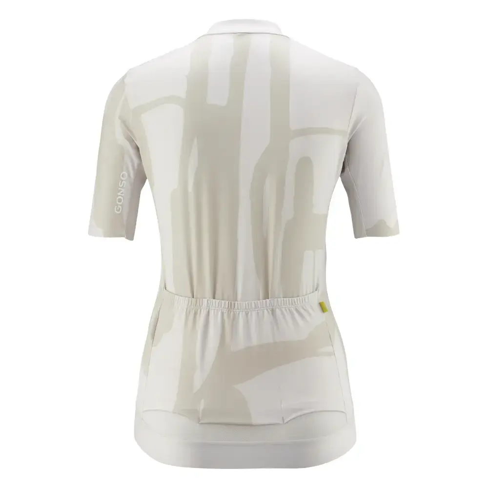 Combineer stijl en performance met het Gonso Road Print Fietsshirt voor dames. Dit shirt volgt de laatste trends met een eigentijds ontwerp en een technologisch geavanceerd materiaal. De nauwsluitende, vrouwelijke snit is perfect afgestemd op de racefiets of gravelbike. Gemaakt van een soepele, zeer elastische stof, biedt dit shirt een optimaal ademend vermogen en droogt het razendsnel, zodat je zelfs tijdens de warmste dagen comfortabel blijft. Met een volledige ritssluiting voor gemakkelijke temperatuurregulatie en drie ruime achterzakken is dit het perfecte shirt voor elke ambitieuze wielrenster.
