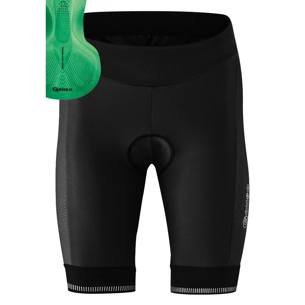 Deze Gonso Sitivo Fietsbroek Lang Zwart met groen zeem is ideaal wanneer je graag op de fiets zit. De fietsbroek met comfortabele groene Sitivo zeem heeft een nauw aansluitende pasvorm dankzij de zeer elastische stof met Lycra. De groene Sitivo zeem is speciaal ontwikkeld voor de rijders die in de licht voorovergebogen houding fietsen. De sportieve toerfietsers dus. De drukpunten die hierdoor ontstaan worden perfect opgevangen door deze zeem. Door het Lycra kun je genieten van een optimale bewegingsvrijheid en een goede ondersteuning van de spieren. De broek wordt op z’n plek gehouden door de silicone gripper in de broekspijpen. Terwijl de reflecterende elementen je voorzien van voldoende zichtbaarheid in donkere omstandigheden.