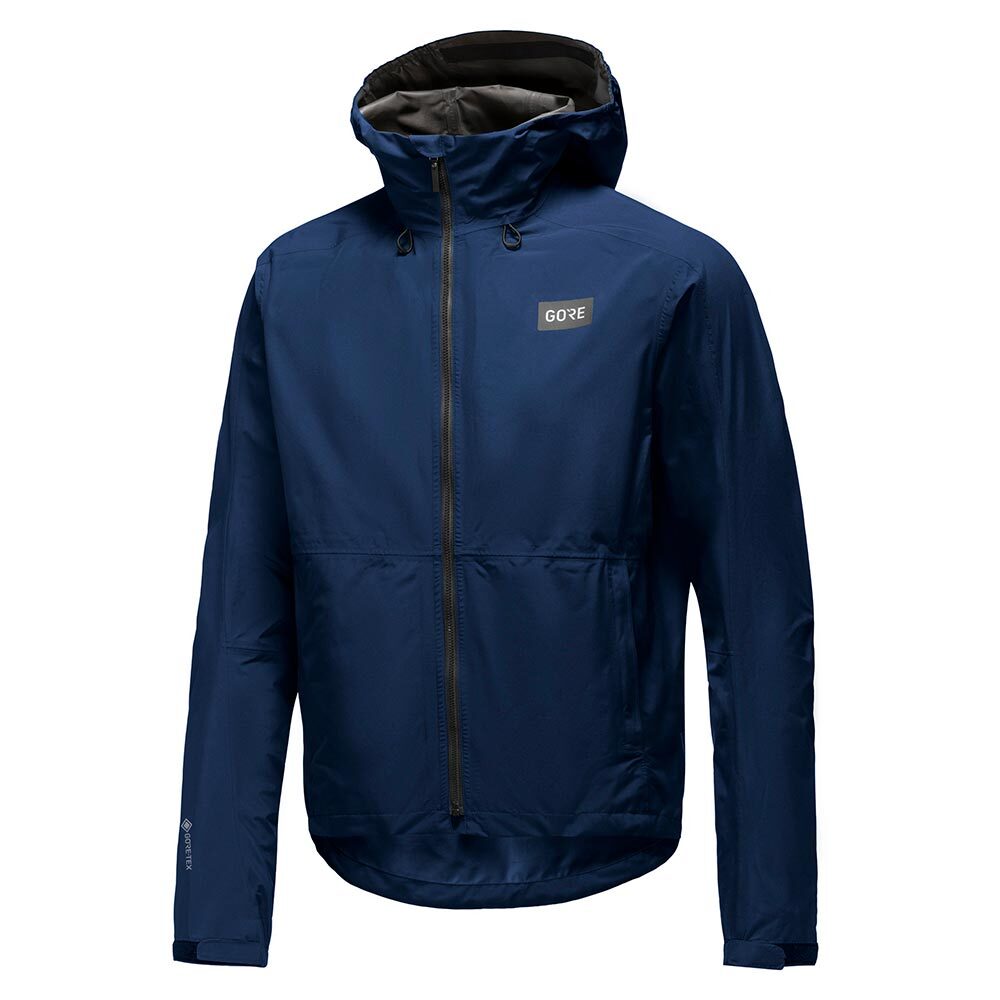 Deze Endure fietsjas van Gore Wear is perfect voor gebruik op en naast de fiets, door zijn casual look en functionele kenmerken. Het jack is licht, opvouwbaar en volledig waterdicht. Het rugpand is wat verlengd, zodat je billen en onderrug ook beschermt is tegen opspattend water. De jas is gemaakt van Gore-Tex Paclite materiaal dat extreem ademend, ultralicht en opvouwbaar is. Wellicht nog belangrijk is dat het materiaal volledig water- en winddicht is. De verstelbare capuchon gaat makkelijk over je helm om je hoofd ook tegen de regen te beschermen. Verder is de jas voorzien van functionaliteiten die zorgen voor een goed pasvorm en zorgen dat water niet via zomen naar binnen kan. Zo is de taillezoom te verstellen met een trekkoord en zitten er klittenbandsluitingen bij de mouwen. De ellebogen van dit regular fit jack zijn voorgevormd. Voor je accessoires zijn er 2 voorzakken met rits aangebracht en een voorvak met rits die tevens dienst doet als opbergzak van het jack zelf. De reflecterende elementen geven je de mogelijkheid ook in omstandigheden met slecht of weinig licht met een gerust hart op de fiets te stappen.