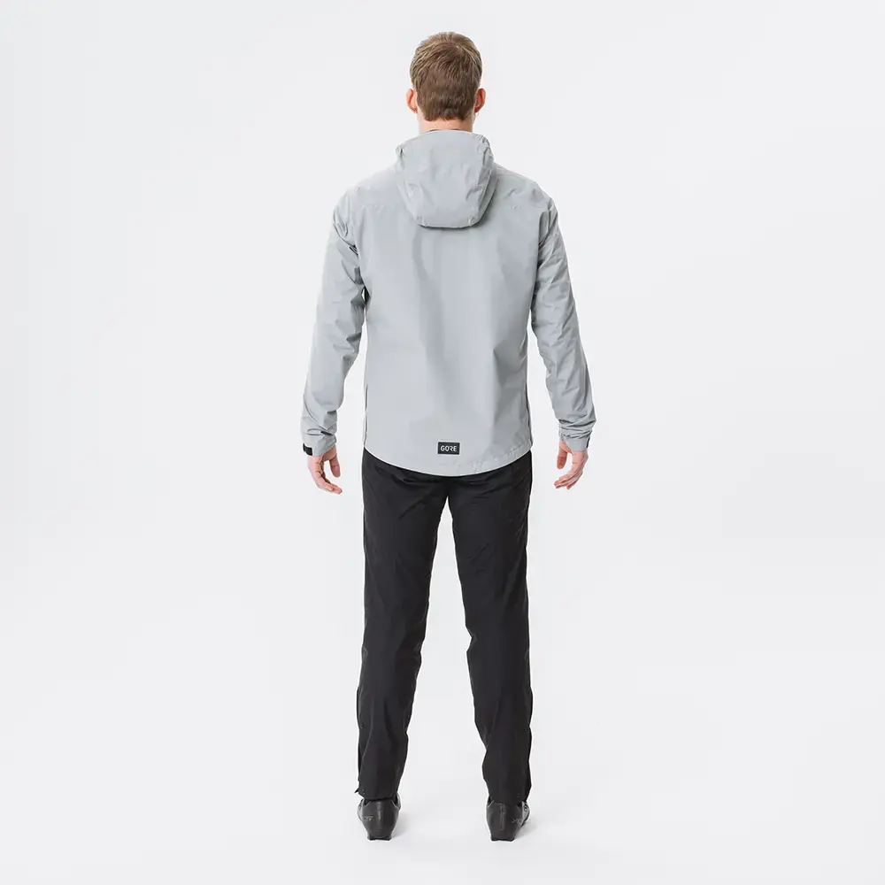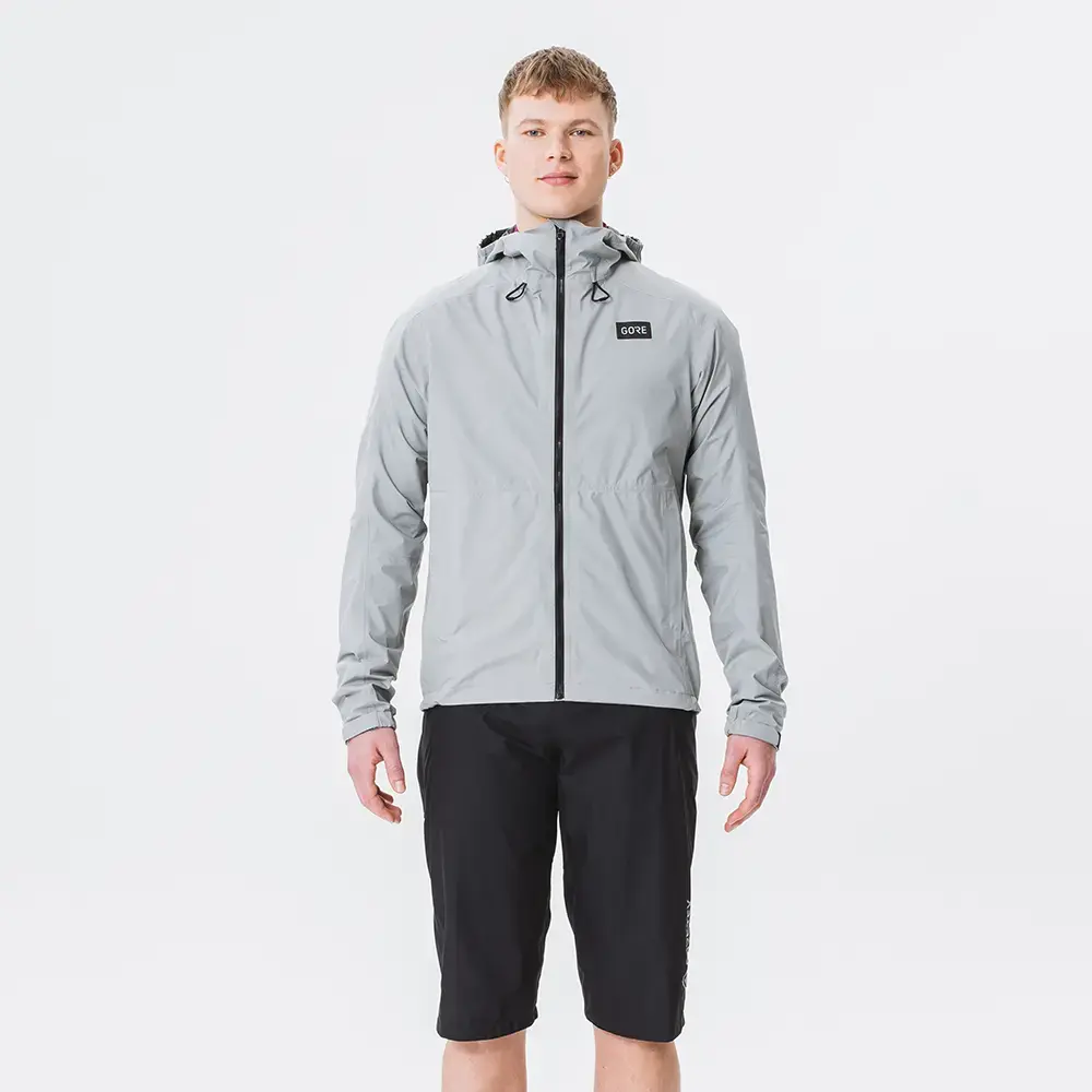 Deze Endure fietsjas van Gore Wear is perfect voor gebruik op en naast de fiets, door zijn casual look en functionele kenmerken. Het jack is licht, opvouwbaar en volledig waterdicht. Het rugpand is wat verlengd, zodat je billen en onderrug ook beschermt is tegen opspattend water. De jas is gemaakt van Gore-Tex Paclite materiaal dat extreem ademend, ultralicht en opvouwbaar is. Wellicht nog belangrijk is dat het materiaal volledig water- en winddicht is. De verstelbare capuchon gaat makkelijk over je helm om je hoofd ook tegen de regen te beschermen. Verder is de jas voorzien van functionaliteiten die zorgen voor een goed pasvorm en zorgen dat water niet via zomen naar binnen kan. Zo is de taillezoom te verstellen met een trekkoord en zitten er klittenbandsluitingen bij de mouwen. De ellebogen van dit regular fit jack zijn voorgevormd. Voor je accessoires zijn er 2 voorzakken met rits aangebracht en een voorvak met rits die tevens dienst doet als opbergzak van het jack zelf. De reflecterende elementen geven je de mogelijkheid ook in omstandigheden met slecht of weinig licht met een gerust hart op de fiets te stappen.