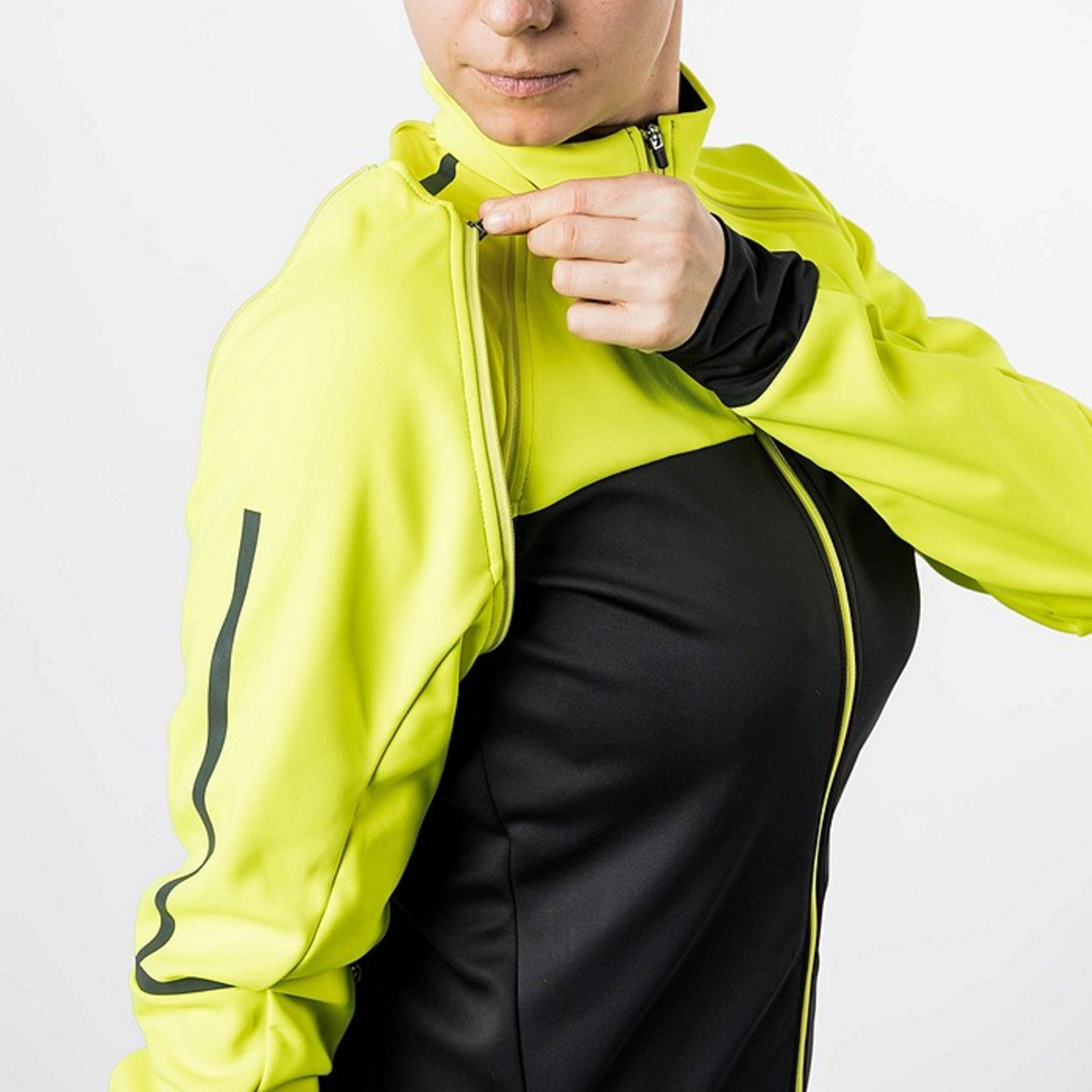 De mouwen zijn afneembaar, zodat het jack te gebruiken is als fietsshirt