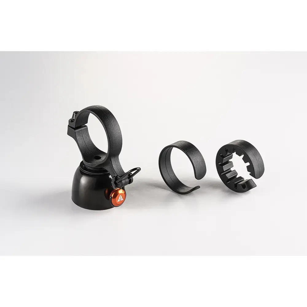 Deze Granite Design Cricket Fietsbel heeft wel een heel uniek ontwerp, met deze bel val je zeker op. Deze bel heeft een hard volume dankzij de grote cap en is eenvoudig te bevestigen op je fiets. Door de meegeleverde ringen is hij compatibel met buis diameters van 22.2 tot 35mm te monteren zonder enkel probleem. Door de bel in ‘koe bel’ modus te zetten zal deze contstant geluid maken, waardoor je op gravelpaden van veraf gehoord zal worden.