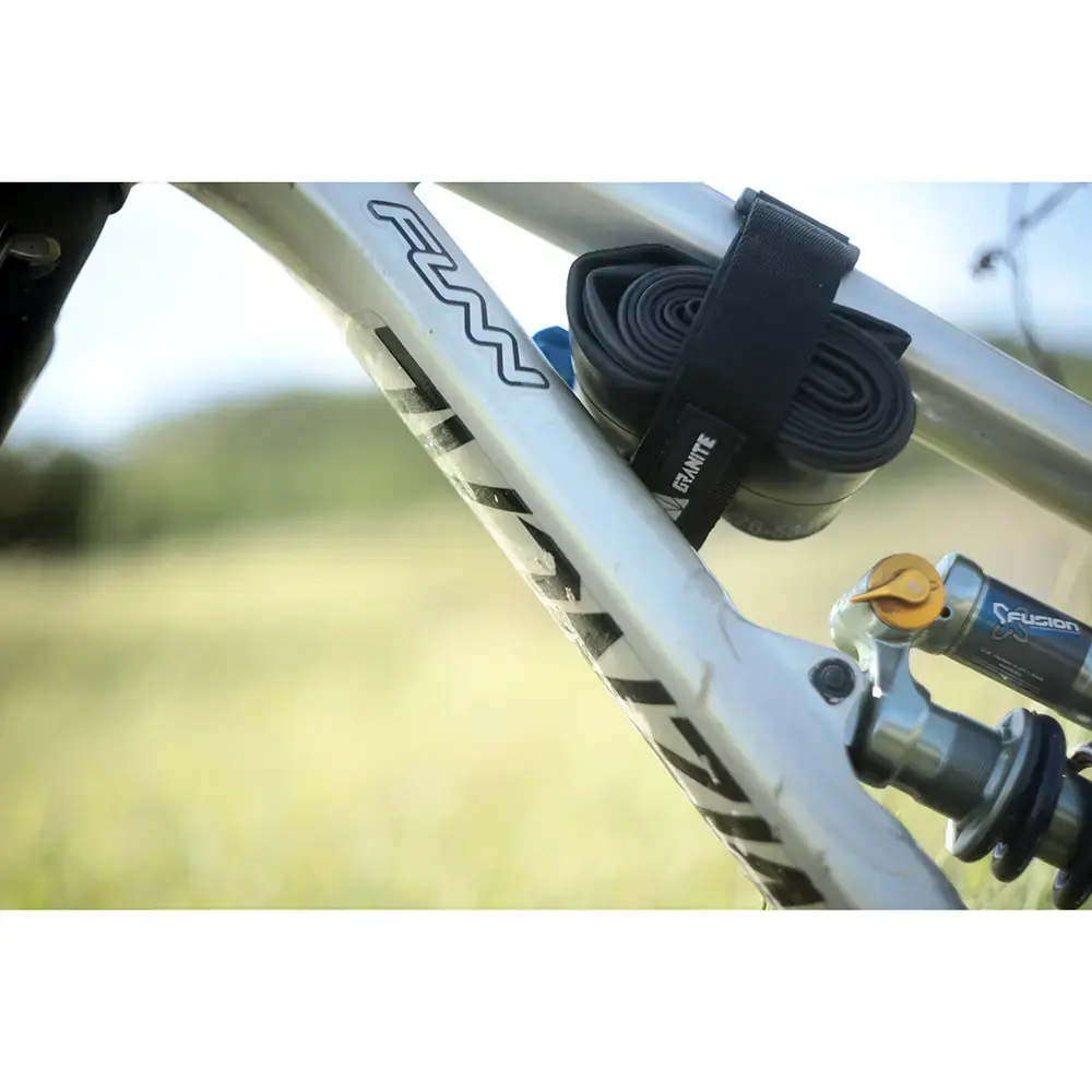 Met deze Granite Design Rockband Strap maak je gemakkelijk een binnenband, minipomp of een multitool vast aan je frame, zonder dat je daarvoor een hele tas nodig hebt. Er zit en interne strap waaraan je de binnenband of pomp bevestigt waarna je het geheel aan je frame vastmaakt.