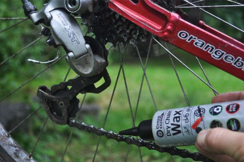 De Green Oil Dry Chain Wax Kettingolie is een smeermiddel voor je ketting, voor gebruik in droge omstandigheden. Het smeermiddel zorgt ervoor dat je ketting soepel loopt en het vermindert kettingslijtage. Bij de meeste kettingoliën heb je het probleem dat je broekspijpen vies worden, maar deze kettingolie van Green Oil houdt je broekspijpen vetvrij! Je kunt het smeermiddel gebruiken op alle typen fietsen. Het middel is vrij van PTFE en petrochemicaliën en is volledig biologisch afbreekbaar. Er is gebruik gemaakt van bijenwas in plaats van petrochemische was en de formule bestaat onder andere uit bio-ethanol gemaakt van suiker, wat het oplosmiddelgedeelte is van de formule. Bovendien is de fles gemaakt van 100% gerecycled plastic en je kunt hem zelf ook recyclen na gebruik.