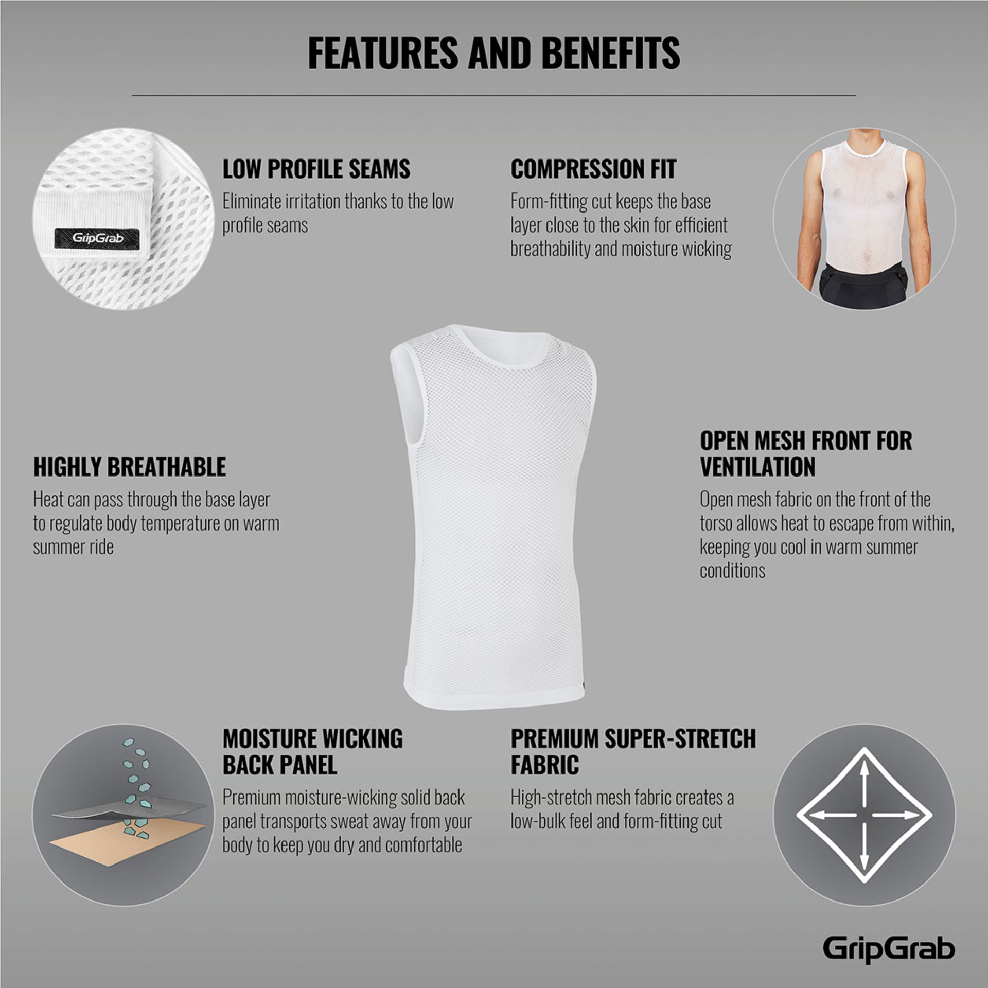 Specificaties GripGrab 3-Season Ondershirt Zonder Mouwen