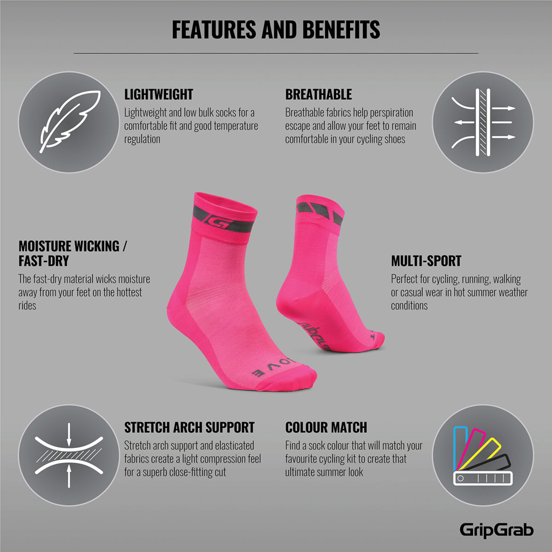 GripGrab Classic Regular Summer Fietssokken Hi-Vis Fluo Roze