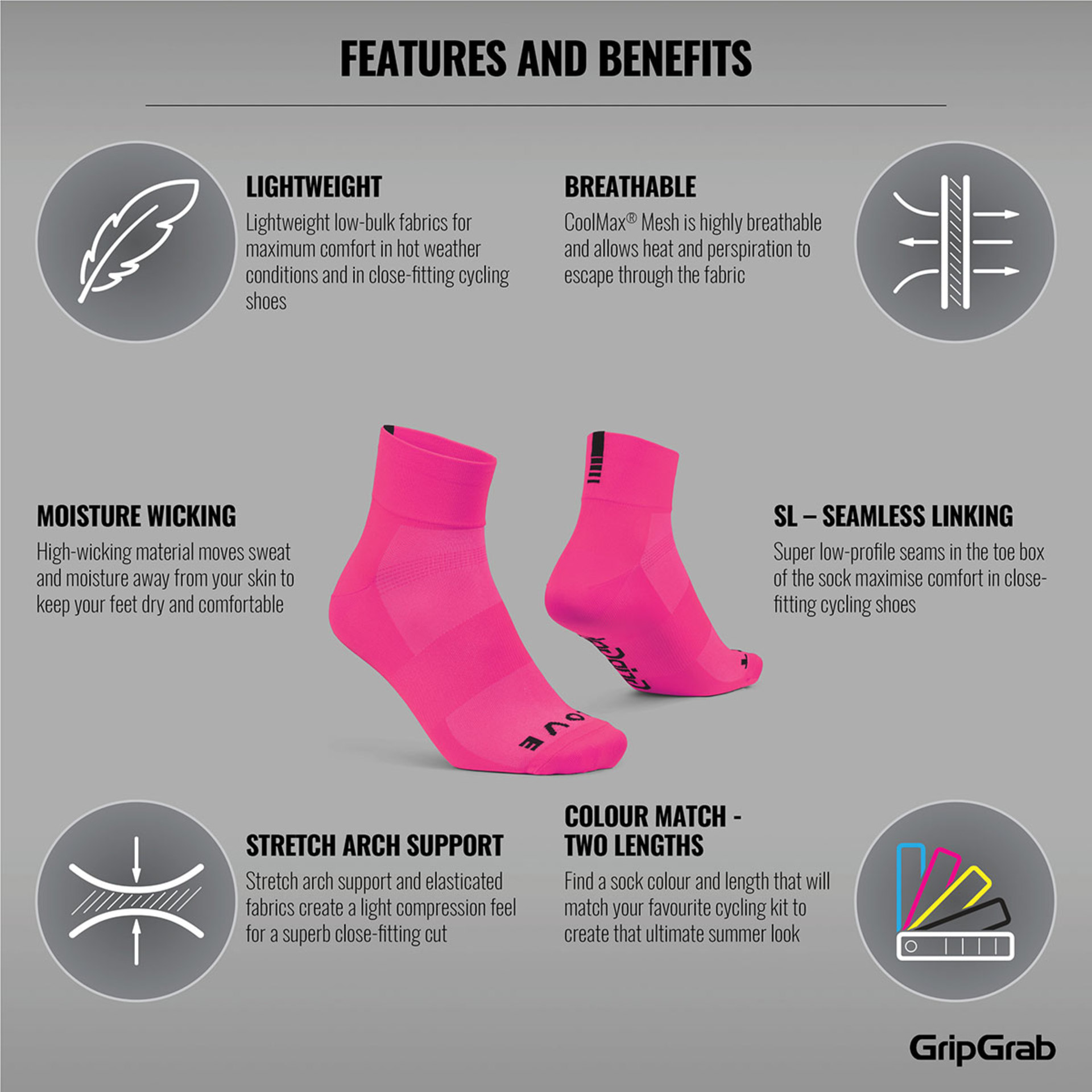 Specificaties GripGrab Lightweight Korte Fietssokken