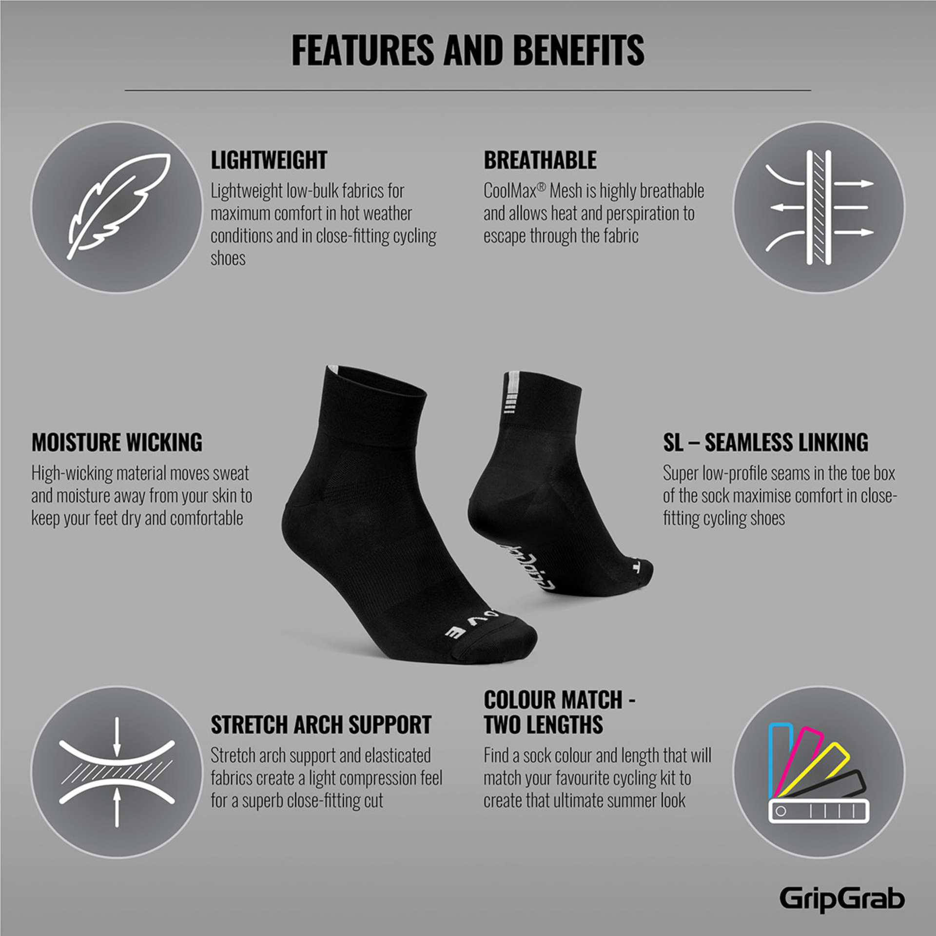Specificaties GripGrab Lightweight Korte Fietssokken