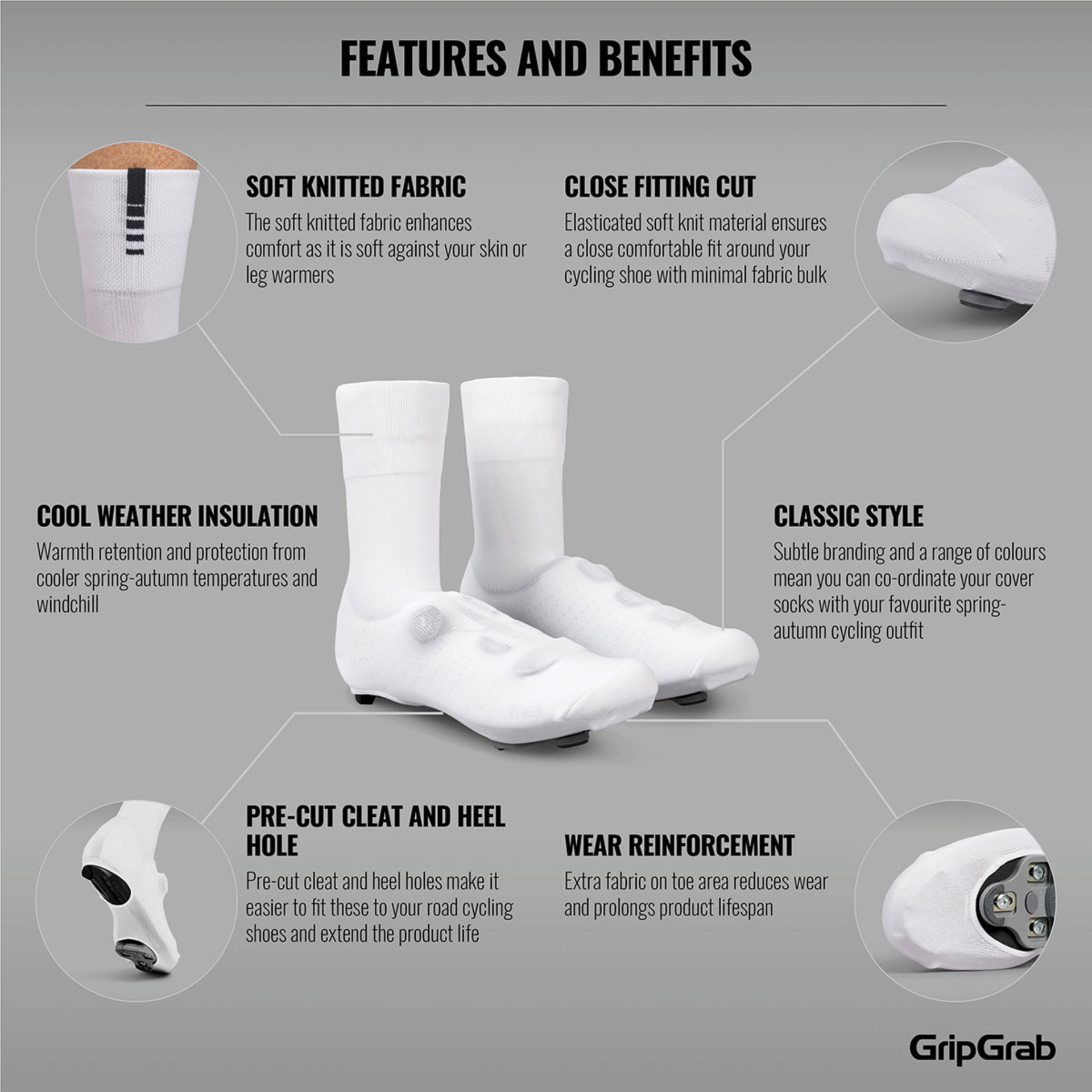 De GripGrab Primavera Oversokken zijn ideaal in koudere omstandigheden. Deze oversokken zorgen ervoor dat je voeten heerlijk warm blijven en dat vuil buiten de schoenen blijft. Ze zijn dankzij het hoge elastische vermogen erg eenvoudig over je schoenen aan en uit te trekken maar sluiten hierdoor ook perfect aan.
