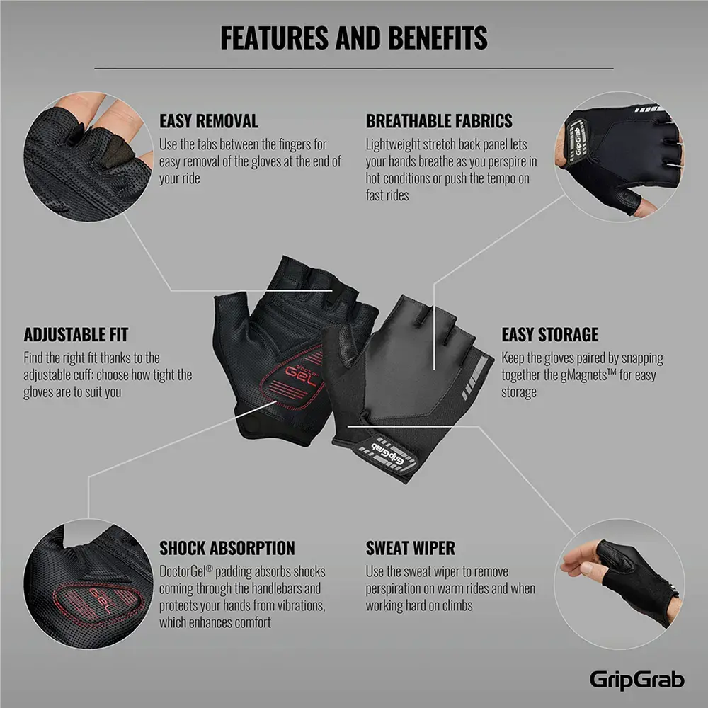 De Progel wielerhandschoenen van GripGrab zijn erg comfortabel, gemaakt van lichtgewicht en flexibele materialen en bieden maximale bewegingsvrijheid gecombineerd met een uitstekende pasvorm en grip. De 4mm DoctorGel kussentjes helpen vermoeidheid en gevoelloosheid van de handen als gevolg van fiets-activiteiten te voorkomen.