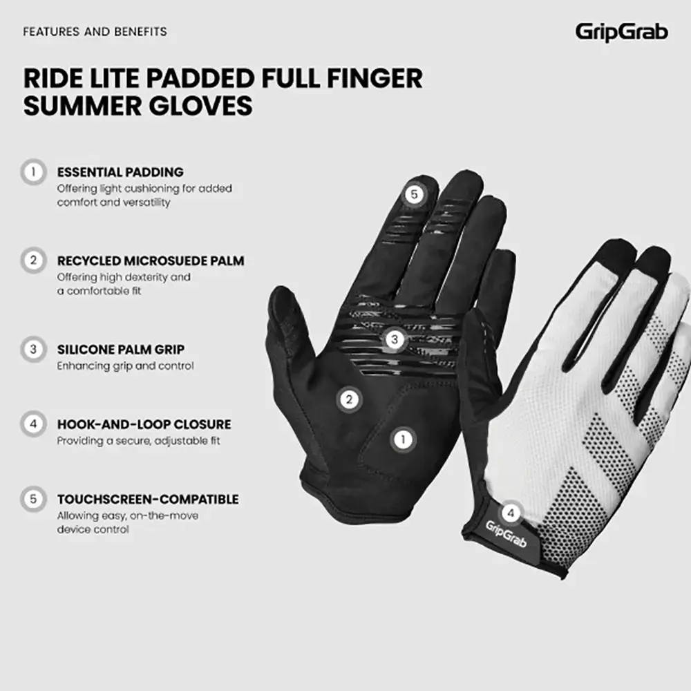 De GripGrab RIDE Lite Padded Full Finger Summer Gloves zijn ontworpen voor fietsers die lichtgewicht comfort en controle eisen bij elke rit. Met precies de juiste hoeveelheid demping bieden deze handschoenen comfort zonder bulk, zodat je een natuurlijke stuurbeleving en verbeterde responsiviteit ervaart. De gerecyclede microsuède palm zorgt voor hoge beweeglijkheid en een comfortabele, stevige grip, ideaal voor trails of gravelritten.