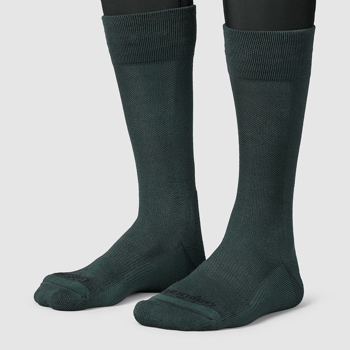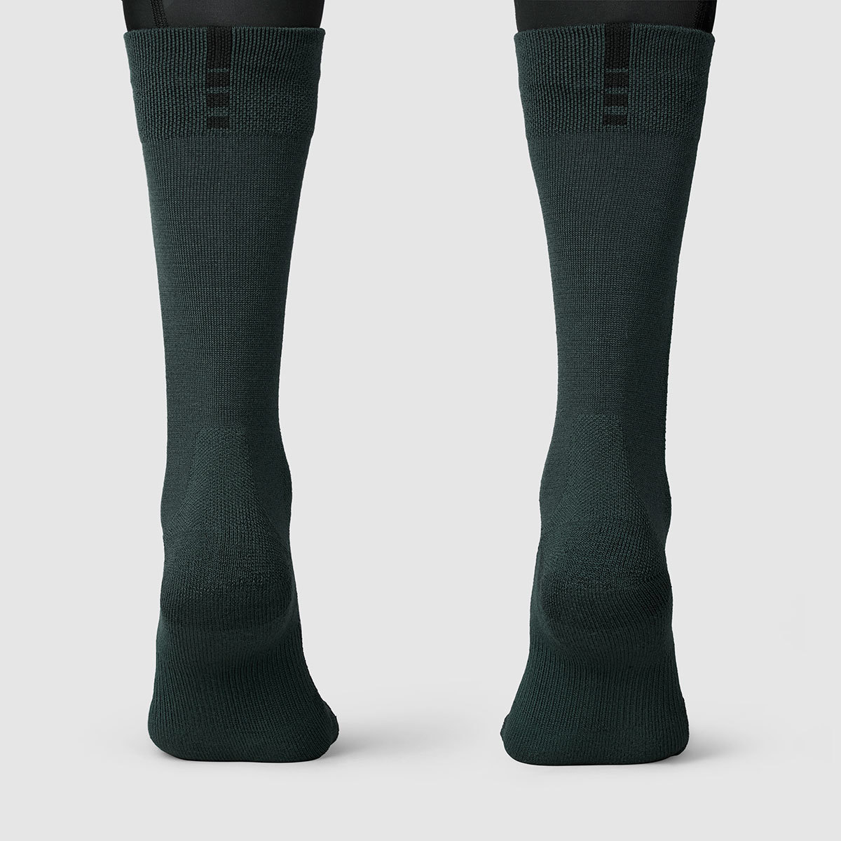 De GripGrab Alpine Merino High-Cut Winter Fietssokken zijn van nature isolerend en voelen comfortabel en zacht aan. Daarnaast hebben deze fietssokken een high-cut pasvorm, voor warme onderbenen en voeten tijdens fietsritten in koud winterweer. De merinowolmix gebruikt 54% merinowol in combinatie met hoogwaardige synthetische vezels. Deze mix biedt de heerlijk zachte en van nature isolerende eigenschappen van merinowol, in combinatie met het vochtafvoerende vermogen en de hogere duurzaamheid van de verweven synthetische vezels. Deze merino wintersokken bieden naast een comfortabel, warm gevoel een uitstekend ademend vermogen, waardoor vocht wordt afgevoerd en je voeten droog en warm blijven. De high-cut pasvorm van de Alpine-winterfietssokken (21 cm) zorgen voor meer bedekking en isolatie van je onderbenen. Echte heavy-duty winter fietssokken die bij uitstek geschikt zijn om onder Legwarmers of een Bibtight te dragen en ervoor zorgen dat er warm bloed van je benen naar je voeten blijft stromen. Deze fietssokken van merinowol zijn gevoerd aan de onderzijde om demping en betere isolatie bij je voetzolen te geven, wat het comfort in je fietsschoenen verhoogt tijdens lange ritten in de winter. De elastische voetbogen en manchetten zorgen ervoor dat de sokken op hun plaats blijven en niet afzakken.
