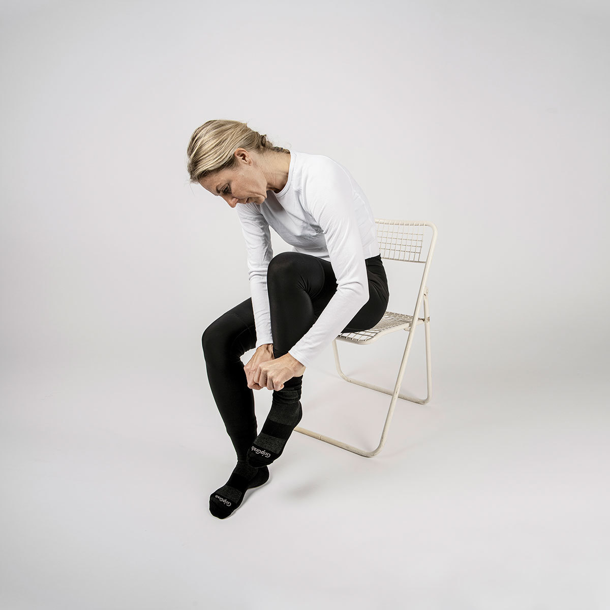 De GripGrab Alpine Merino High-Cut Winter Fietssokken zijn van nature isolerend en voelen comfortabel en zacht aan. Daarnaast hebben deze fietssokken een high-cut pasvorm, voor warme onderbenen en voeten tijdens fietsritten in koud winterweer. De merinowolmix gebruikt 54% merinowol in combinatie met hoogwaardige synthetische vezels. Deze mix biedt de heerlijk zachte en van nature isolerende eigenschappen van merinowol, in combinatie met het vochtafvoerende vermogen en de hogere duurzaamheid van de verweven synthetische vezels. Deze merino wintersokken bieden naast een comfortabel, warm gevoel een uitstekend ademend vermogen, waardoor vocht wordt afgevoerd en je voeten droog en warm blijven. De high-cut pasvorm van de Alpine-winterfietssokken (21 cm) zorgen voor meer bedekking en isolatie van je onderbenen. Echte heavy-duty winter fietssokken die bij uitstek geschikt zijn om onder Legwarmers of een Bibtight te dragen en ervoor zorgen dat er warm bloed van je benen naar je voeten blijft stromen. Deze fietssokken van merinowol zijn gevoerd aan de onderzijde om demping en betere isolatie bij je voetzolen te geven, wat het comfort in je fietsschoenen verhoogt tijdens lange ritten in de winter. De elastische voetbogen en manchetten zorgen ervoor dat de sokken op hun plaats blijven en niet afzakken.