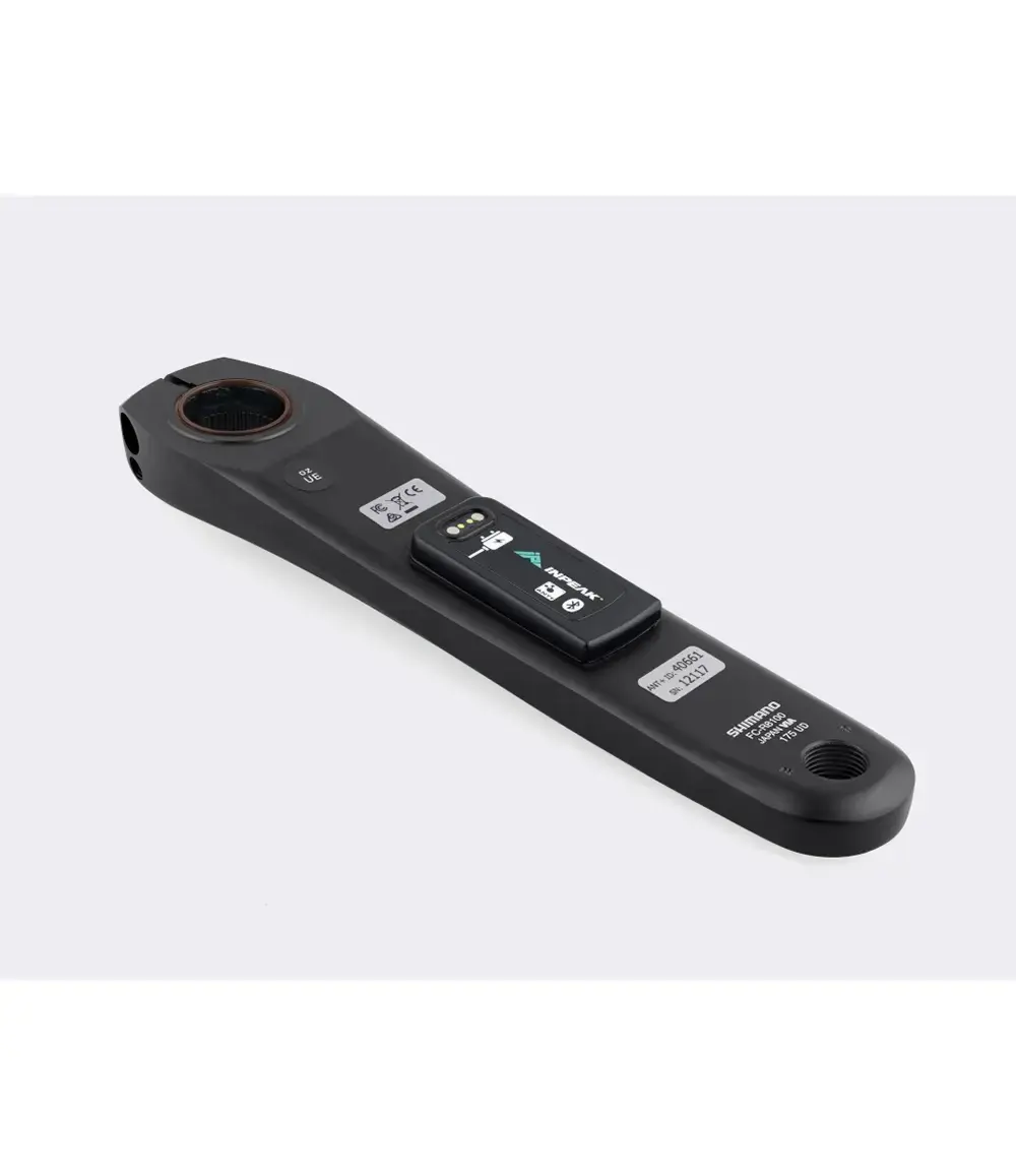 Met de Powercrank-E Single Shimano Ultegra FC-R8100 kan je perfect je inspanning monitoren. Deze powermeter heeft een maximale afwijking van slechts 2%. De powermeter is IP67 waterdicht waardoor je hem in de regen ook zonder problemen kan gebruiken. De unit zelf weegt 10 gram, en voegt dus nauwelijks extra gewicht toe aan je fiets. De powermeter is gemakkelijk te koppelen aan je fietscomputer en aan de Inpeak app, waar je hem ook kan kalibreren. Het is van belang dit regelmatig te doen, zodat je uit kan gaan van de meest accurate meting! Op die manier haal je alles uit je training en til je jezelf naar een hoger niveau! De powermeter is op te laden met het meegeleverde oplaadkabeltje.
