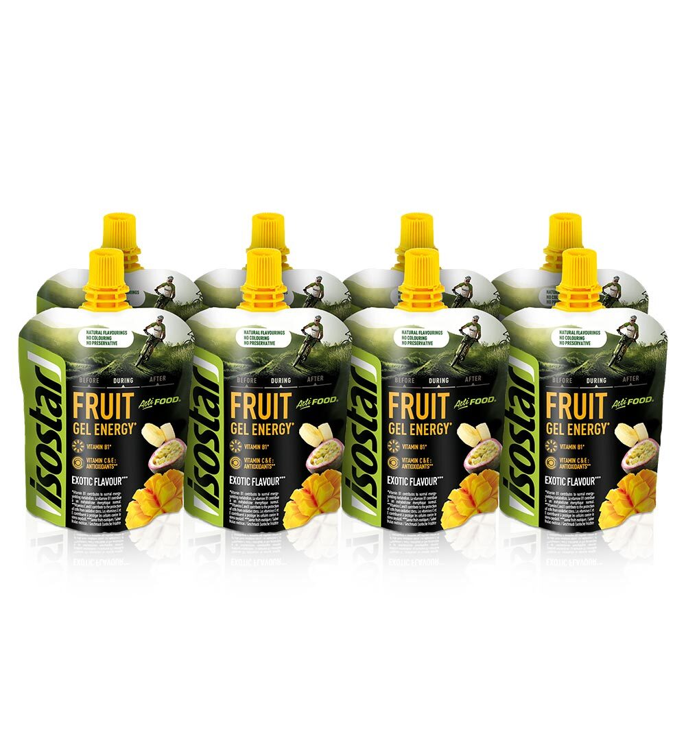 De fruitgels Actifood zijn een onmiddellijke bron van energie. Dankzij hun ultra-energetische formule met 97% energie aangebracht door koolhydraten, en toevoeging van vitamine C en E, en 16% vitamine B1, zijn de fruitgels Actifood de onmisbare metgezel bij intense inspanningen. Ze bevatten ook absoluut geen vetstoffen, wat een snellere opname van de koolhydraten mogelijk maakt. Hun exclusieve recept bestaat uit echt fruit voor een heerlijke smaak. De sporter kan ze nog vlotter meenemen en opeten omwille van hun soepele en hersluitbare verpakking in zakvorm. Hierdoor kan je deze in meerdere malen tijdens een inspanning consumeren.