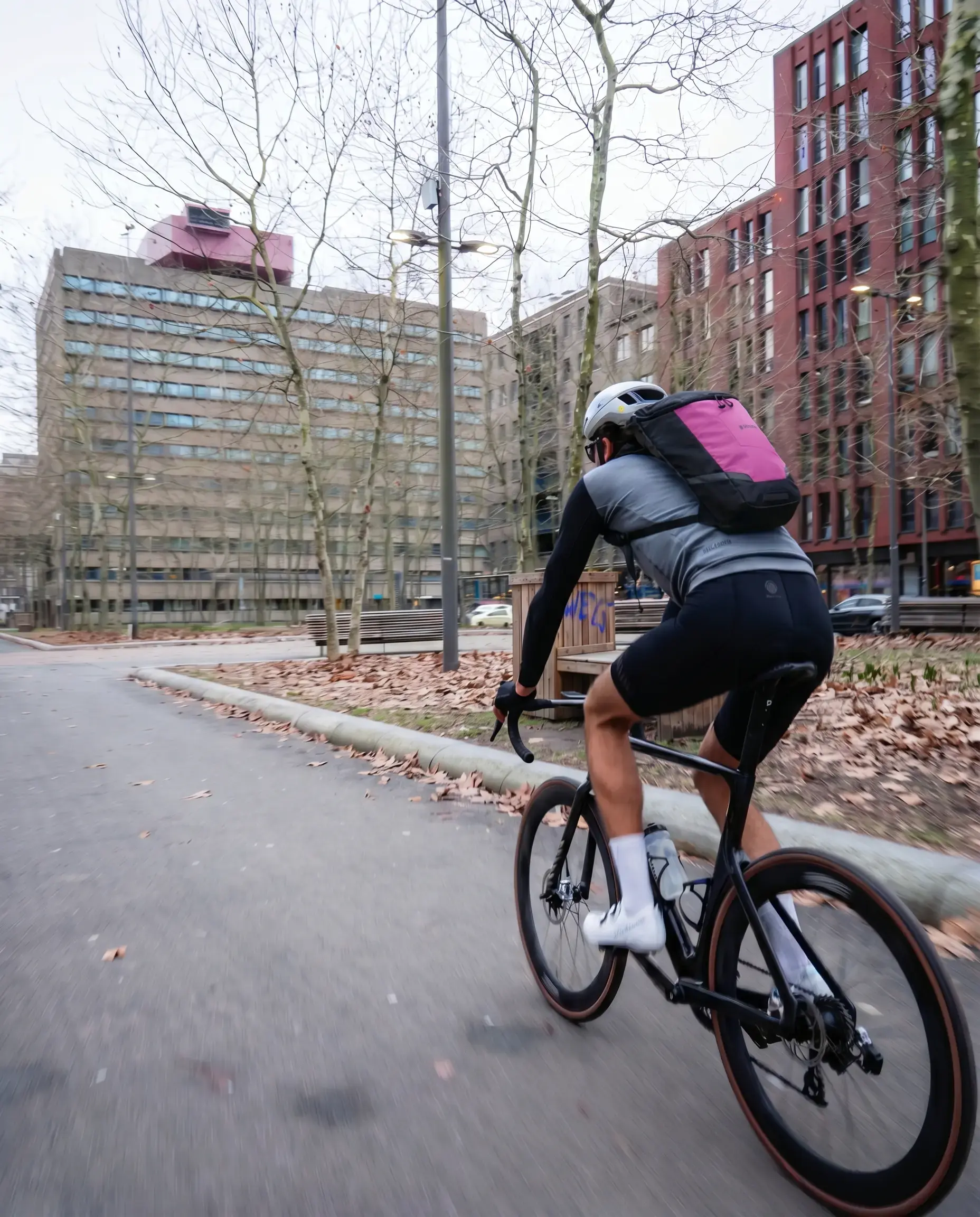 De Joimaa Fietsrugzak Small met een inhoud van 7.5 liter is de perfecte metgezel voor iedere fietser die op zoek is naar een compacte, comfortabele en uiterst functionele rugzak. De tassen van Joimaa worden met de grootste zorg en aandacht voor detail ontworpen, waarbij alleen gebruik is gemaakt hoogwaardige materialen, zoals de onverwoestbare YKK-ritsen. Het slimme ontwerp omvat een voorbereiding voor een drinksysteem, zodat je altijd gehydrateerd blijft tijdens je rit. De geventileerde mesh schouderriemen en het rugpand zorgen voor een uitstekend ademend vermogen en comfort, zelfs tijdens intensieve inspanningen. Dankzij de interne opbergvakken met ritssluiting, het eenvoudig bereikbare voorvak en de verstelbare borstband kun je al je essentiële spullen georganiseerd en veilig meenemen. Voor extra veiligheid in het donker is de rugzak voorzien van reflecterende logo's en een handig lusje om een achterlicht aan te bevestigen. En met zijn PFAS-vrije productie is deze rugzak ook nog eens een bewuste keuze!