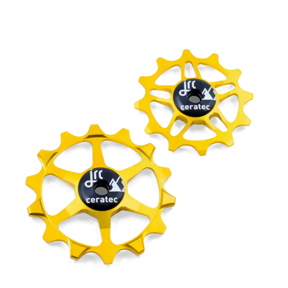 De JRC Derailleurwielset SRAM Eagle 12/14T is ontworpen voor SRAM Eagle 12-speed derailleurs en biedt superieure duurzaamheid en efficiƫntie. De keramische hybride lagers zorgen voor soepelere werking en minder onderhoud, terwijl het lichtgewicht aluminium ontwerp betrouwbare prestaties biedt onder alle omstandigheden. Niet compatibel met nieuwere T-Type modellen.