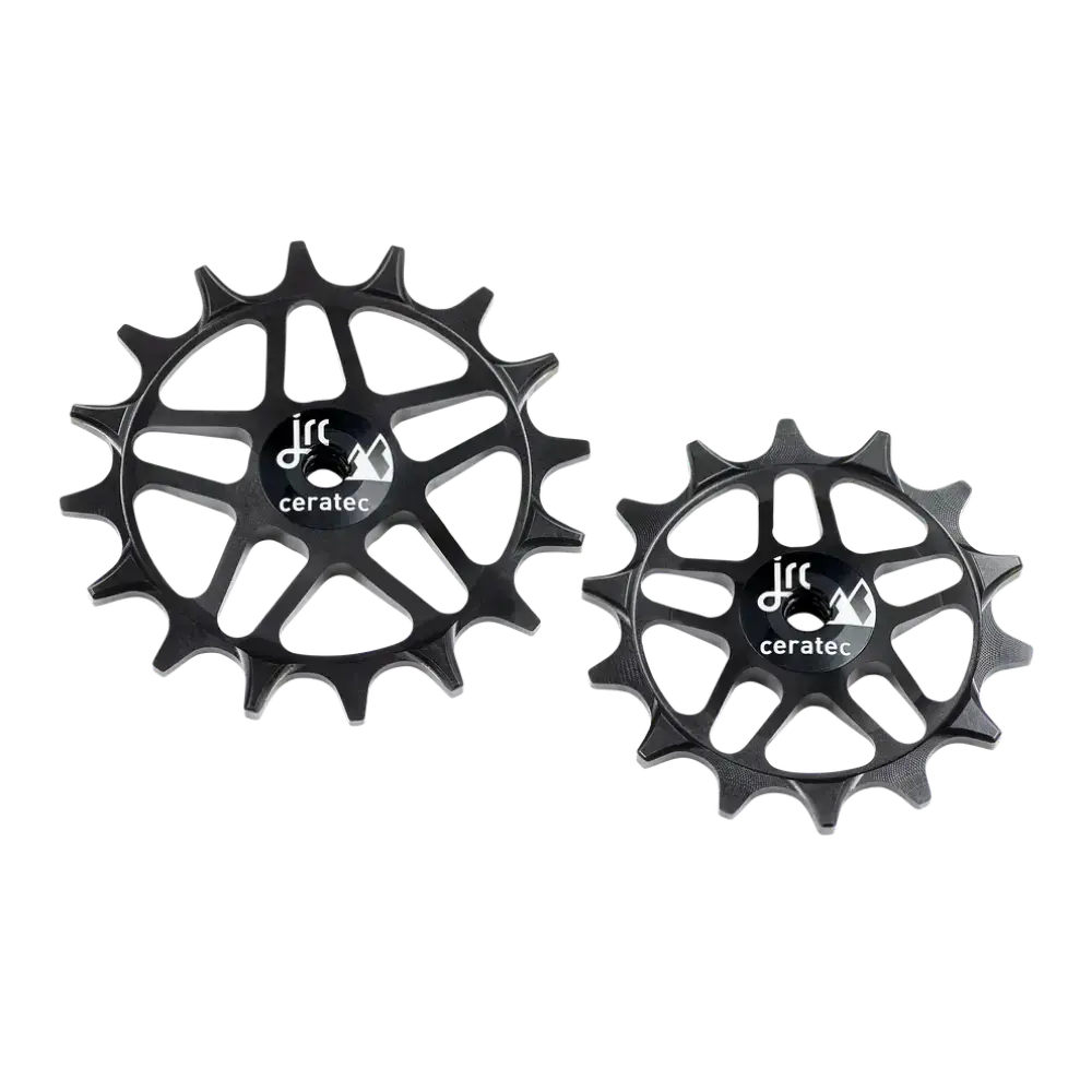 De JRC Derailleurwielset SRAM Eagle T-Type 12 Speed 14/16T is ontworpen voor SRAM Eagle T-Type 12-speed derailleurs en biedt superieure duurzaamheid en efficiëntie. De keramische hybride lagers zorgen voor soepelere werking en minder onderhoud, terwijl het lichtgewicht aluminium ontwerp betrouwbare prestaties biedt onder alle omstandigheden. Perfect voor intensief gebruik op uitdagende trails.