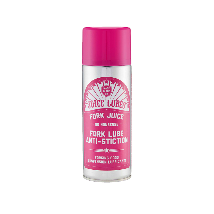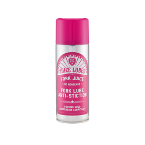 Fork Juice is het product dat Juice Lubes groot heeft gemaakt. Deze spray is te gebruiken bij problemen met de vering met betrekking tot schuifwrijving. Het kan de stroefheid van de vering verminderen, maar ook helpen voorkomen. Zelfs kleine hobbeltjes welke normaliter de vering niet activeren zullen nu wel worden opgevangen in plaats van dat je het zelf opvangt. Ook is Fork Juice goed te gebruiken bij nieuwe voorvorken welke nog redelijk stroef veren. Ook biedt Fork Juice bescherming tegen slijtage.