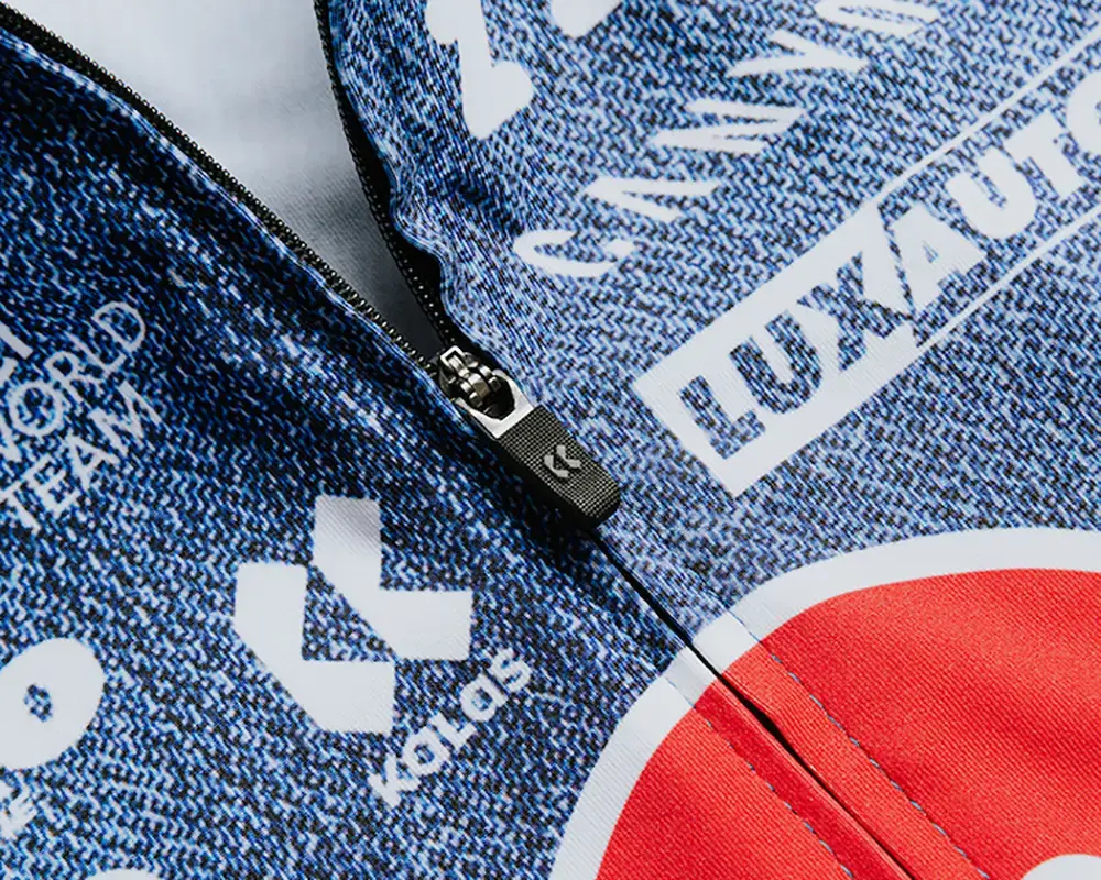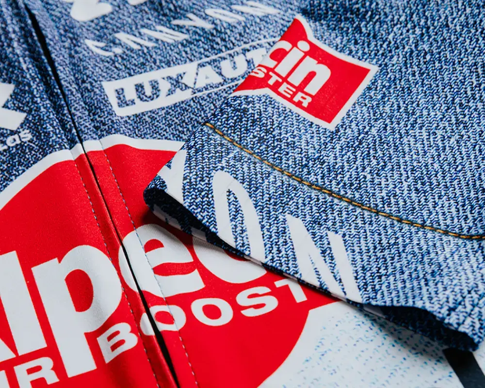 Opvallend Denim design zorgt ervoor dat je echt opvalt in het peleton!