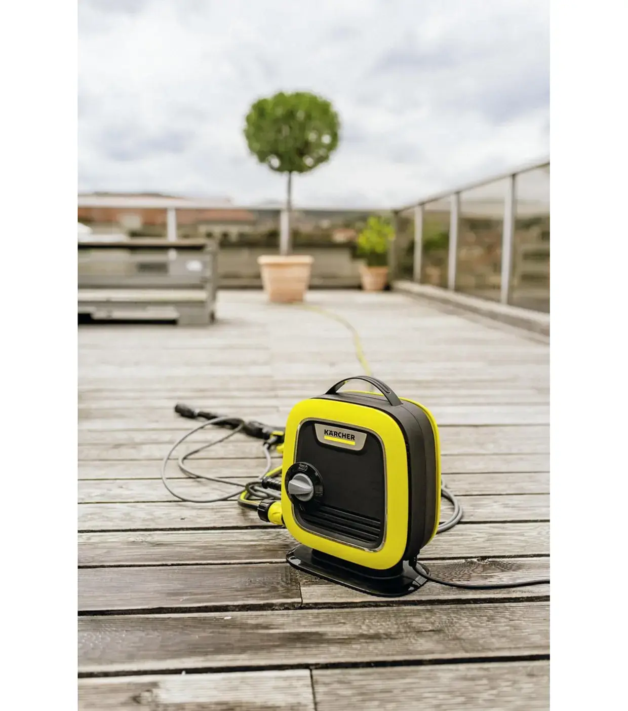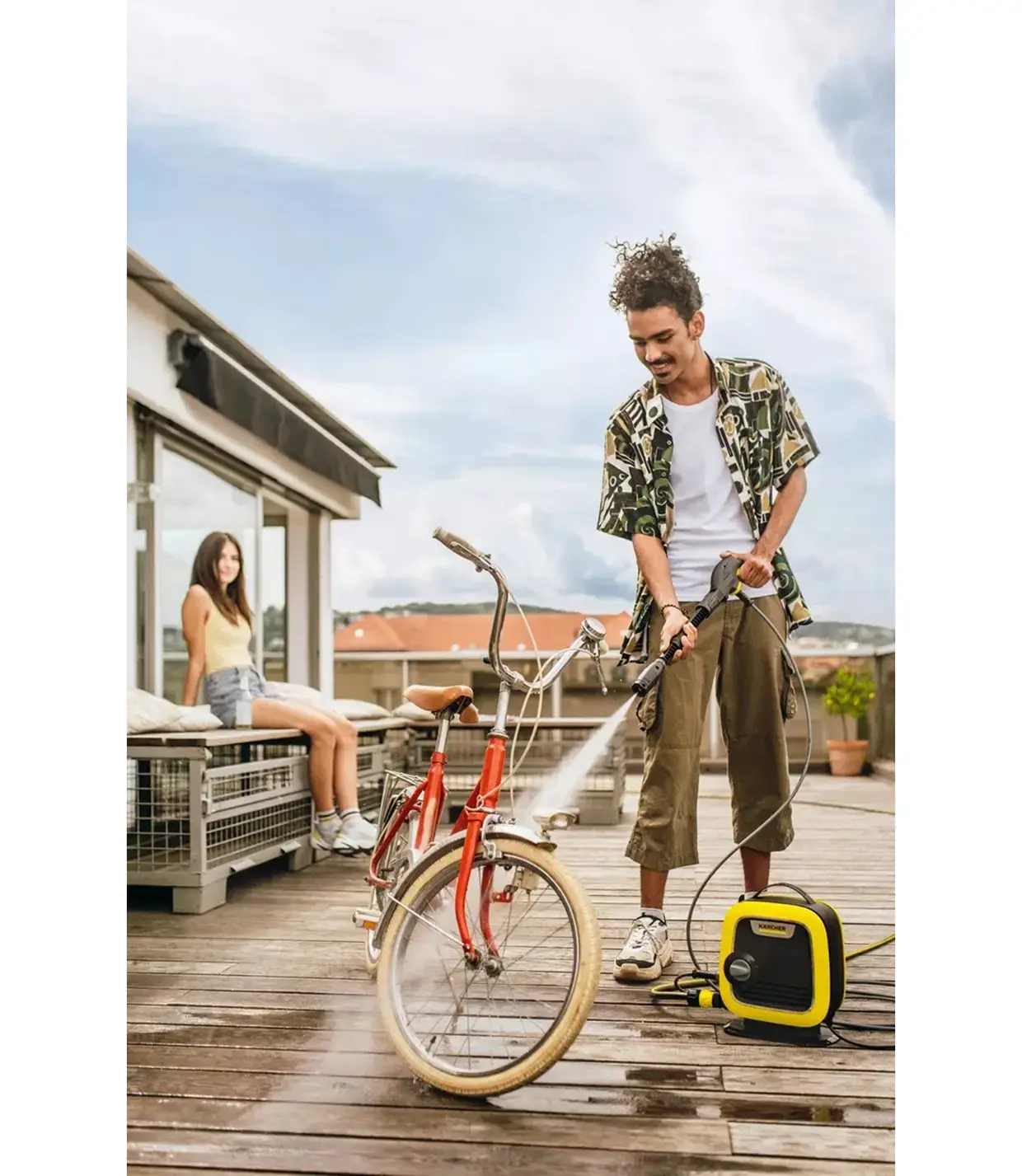 De K Mini is de kleinste hogedrukreiniger van Kärcher en verwijdert vuil in een mum van tijd. Dankzij het lichte gewicht en het praktische formaat kan hij gemakkelijk worden vervoerd en opgeborgen. Deze kleine krachtpatser is ideaal voor gebruik bij fietsen! De K Mini maakt snel en efficiënt schoon. Het spuitpistool, de verlengbuis en de Vario Power-spuitlans kunnen in slechts enkele stappen worden gemonteerd. Door het Quick Connect systeem klik je de hogedrukslang eenvoudig en snel in en uit het apparaat en spuitpistool. De 5 meter lange PremiumFlex hogedrukslang is extra dun en voorkomt vervelende knopen. De slang biedt maximale flexibiliteit en bewegingsvrijheid tijdens het schoonmaken. De meegeleverde accessoires worden simpel opgeborgen in de afneembare houder voor onderdelen. De stroomkabel wikkel je rond het apparaat en klik je vast met een clip die de kabel op de plaats houdt. Door het compact formaat berg je de K mini makkelijk op in een kast of lade.
