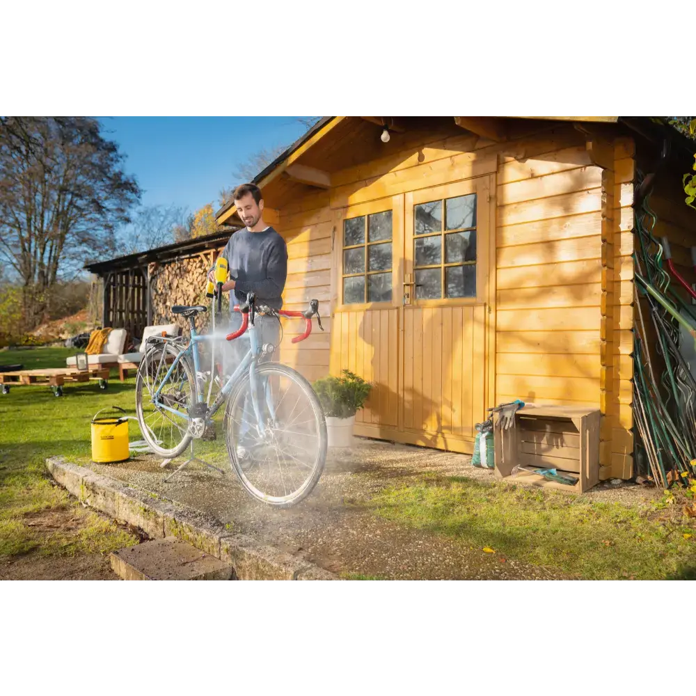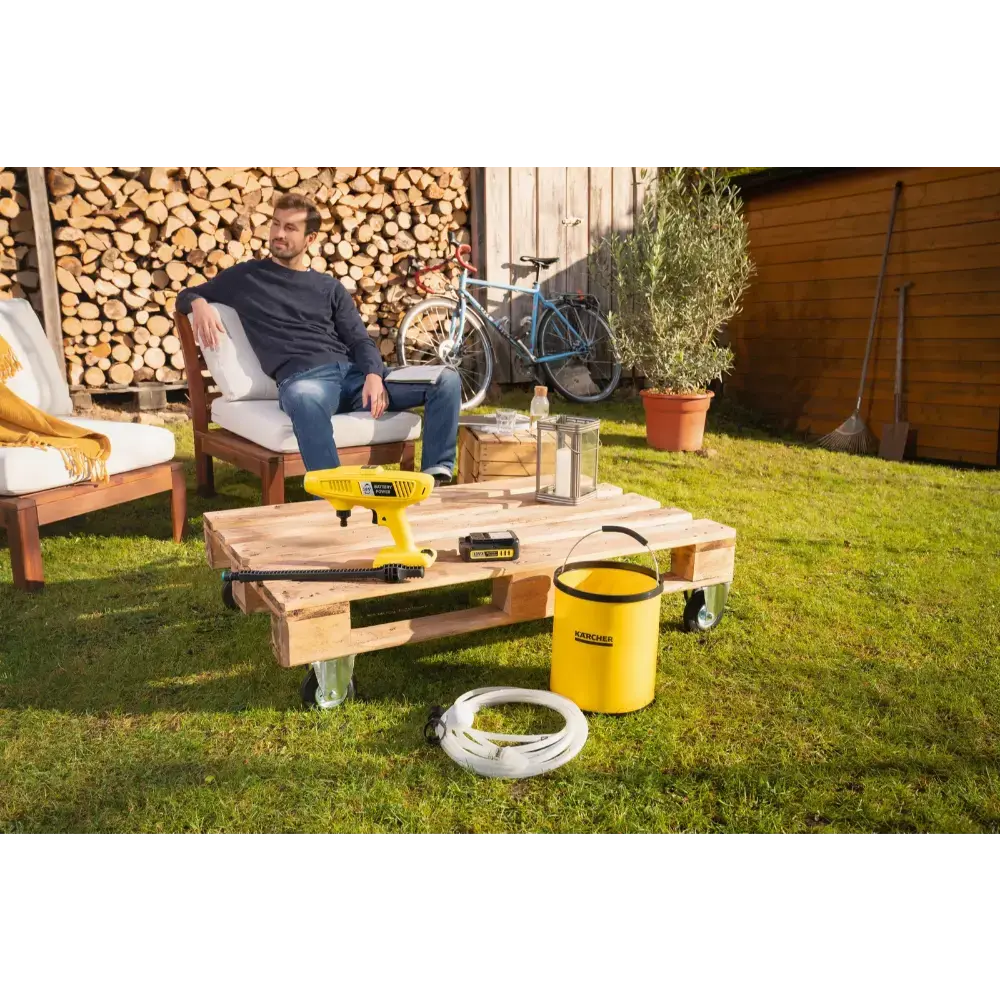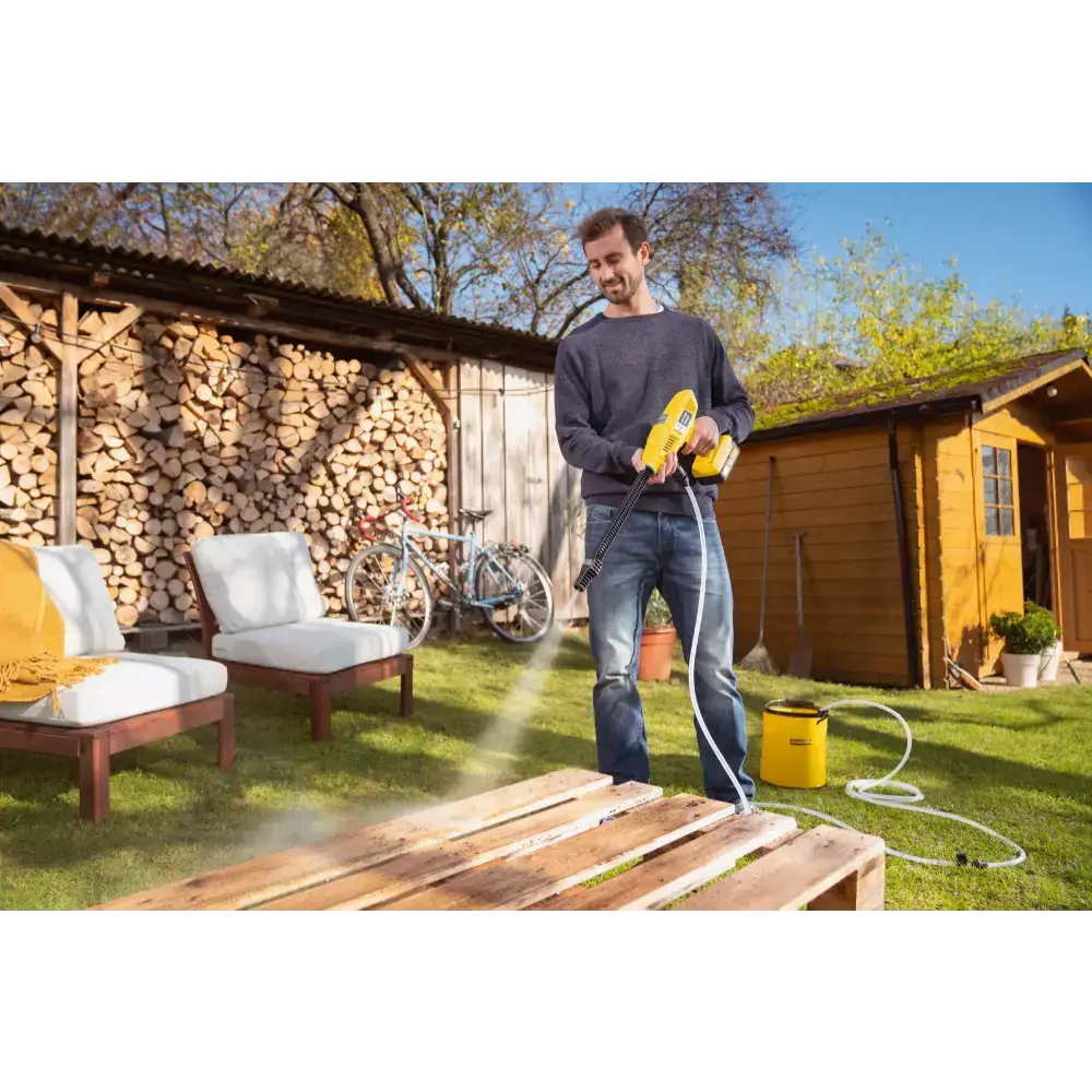 Geen stroomaansluiting? Geen probleem! De Kärcher KHB 4-18 Plus is een lichtgewicht, handheld en accu-aangedreven middendrukreiniger die praktisch alles rondom het huis schoonmaakt zonder dat je een stopcontact nodig hebt. Sluit simpelweg de slang aan en hij is klaar voor gebruik. Met de meegeleverde vlakstraalsproeier verwijder je snel hardnekkig vuil van tuinmeubelen, buitenspeelgoed en fietsen. Voor het zwaardere werk, zoals aangekoekte modder op bloempotten, gebruik je de efficiënte roterende vuilfrees. Beide mondstukken worden standaard meegeleverd. Deze set is inclusief een duurzame en krachtige 18 V Kärcher accu en een oplader, zodat je direct aan de slag kunt. Dankzij de optionele zuigslang is het zelfs mogelijk om water uit alternatieve bronnen te gebruiken, zoals een regenton.