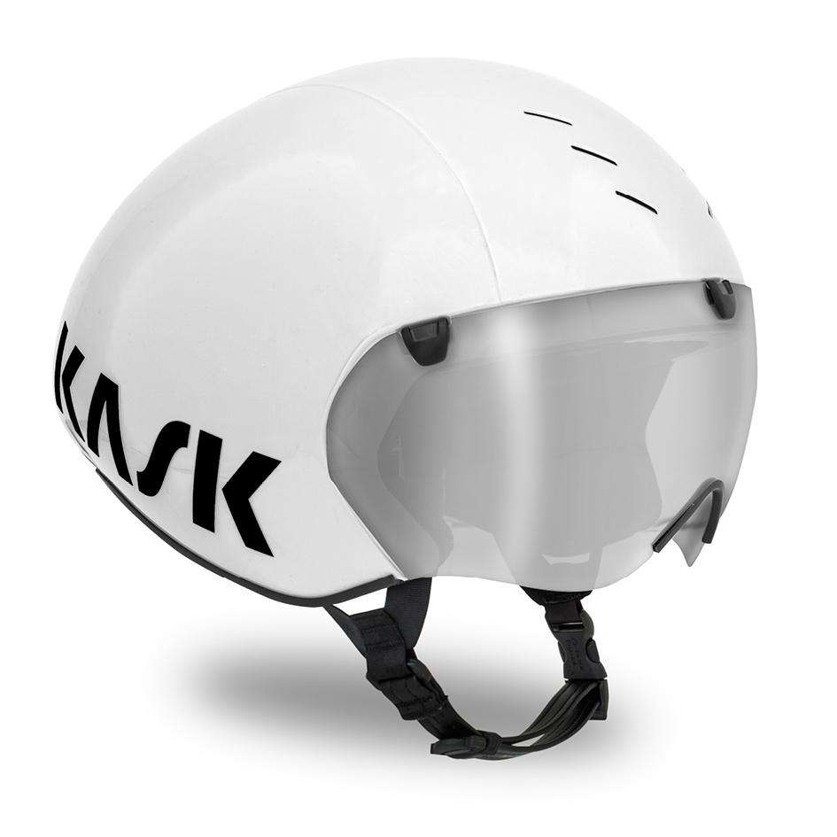 Verbeter alle records en toptijden met de KASK Bambino Pro tijdrithelm. Deze helm is van absolute topkwaliteit, het is niet zomaar dat ook Team Sky tijdens de Tour de France van 2017 al mee reed. De opvolgers van dat team, Team INEOS-Grenadiers, rijdt nog steeds met deze helm. Meer bewijs om aan te tonen dat dit een tophelm is, heb je niet nodig toch? Zoals je mag verwachten is deze helm op en top aerodynamisch na veelvuldig testen in de windtunnel. De padding in de helm is ademend en sneldrogend zodat je er comfortabel bij blijft fietsen. Deze helm biedt veel bescherming, is uitgerust met een magnetisch vizier en wordt geleverd inclusief een bijpassende helmzak.