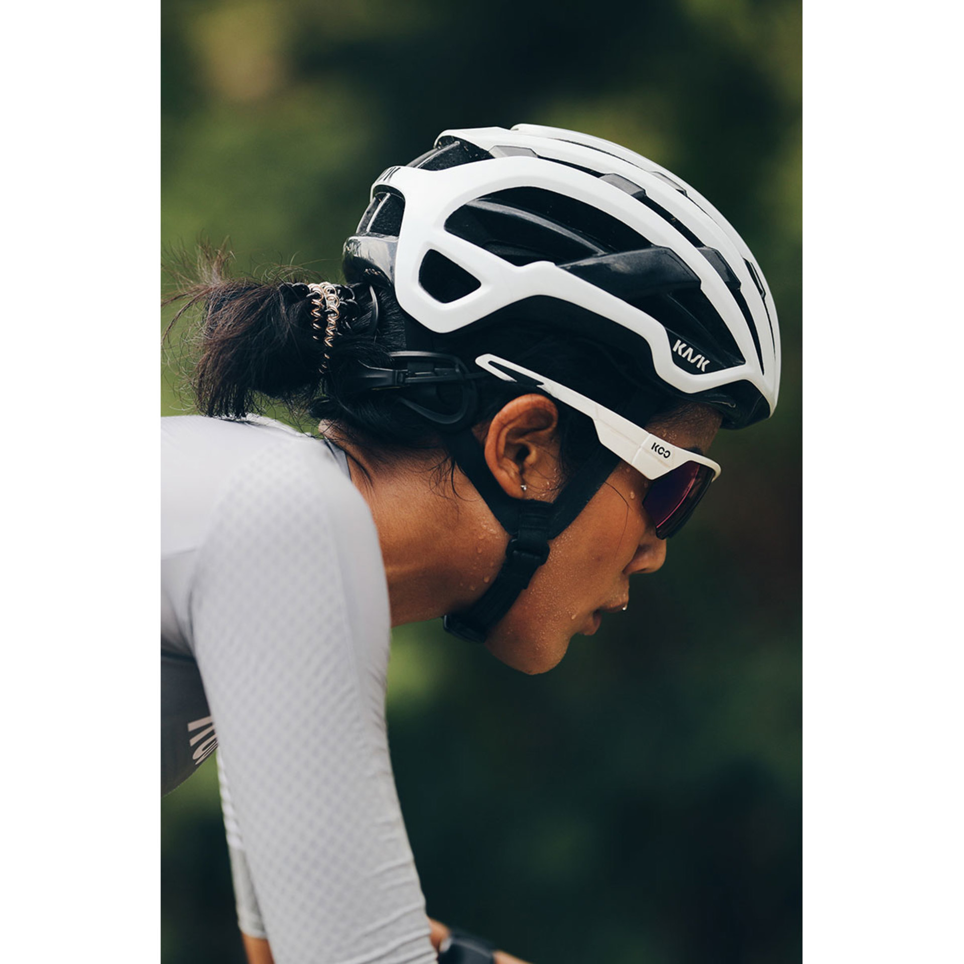 De Valegro fietshelm is een echte topper uit het assortiment van KASK. Deze helm is aerodynamisch en compact. De helm vangt klappen uitstekend op dankzij de In-Moulding technologie en de stevige polycarbonaat buitenlaag. De padding is goed ademend en sneldrogend, zodat deze heerlijk fris blijft. Profiteer van een heerlijke frisse lucht door de helm dankzij maar liefst 36 ventilatieopeningen. Ideaal voor tijdens warme dagen in de zomer, of bijvoorbeeld in de klim! Deze helm wordt geleverd inclusief zak om de helm in op te bergen.