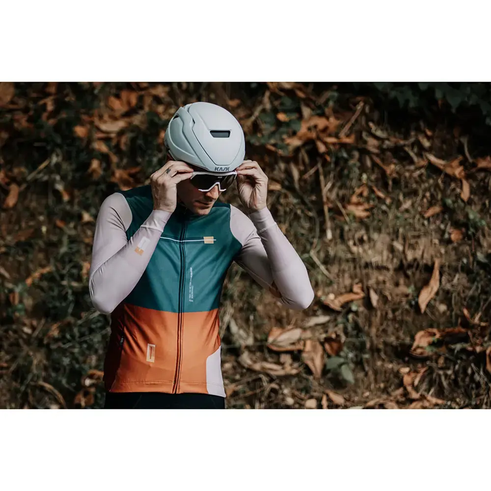De KASK Wasabi Race Fietshelm is een revolutionaire helm bomvol met nieuwe technieken om je race- of gravelrit nog aangenamer en veiliger te maken. Ook de renners van Team INEOS Grenadiers kiezen voor de Wasabi. Zo is het een van de eerste fietshelmen op de markt die is voorzien van een merinowol-voering. Deze is antibacterieel en heeft een super hoog ademend vermogen. Wat de helm echt uniek maakt is het verstelbare ventilatiekanaal. Met slechts één druk met je vinger kan de opening aan de voorkant van de helm gemakkelijk worden geopend of gesloten. Met minder dan één watt verlies tussen het openen en sluiten van de ventilatie bij een snelheid van 50 km/u, bevestigen windtunneltests dat de Wasabi een van de meest aerodynamische fietshelmen in het profpeloton is, net achter het KASK Utopia model. Om de veiligheid te waarborgen is de Wasabi onderworpen aan drastische tests, die veel verder gaan dan de verplichte industrienormen. Daardoor ga je met een veilig gevoel op pad. Zoek je een complete, veilige en aerodynamische helm voor het gehele jaar? Dan is de Wasabi een topkeuze!