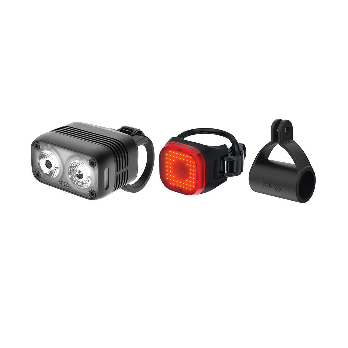 Deze Blinder Road 600 + Blinder Mini Square verlichtingsset van Knog biedt voldoende zichtbaarheid en zicht om veilig en vertrouwd in het donker de fietspaden te trotseren.