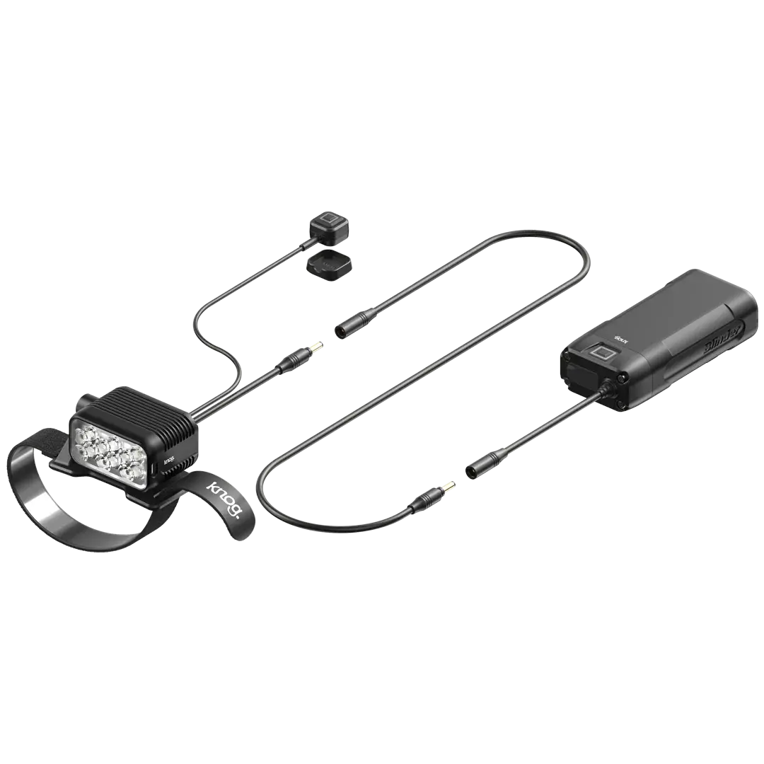 De Knog Blinder X Action 2300 Koplamp + Powerbank 10.000mAh en Helmbevestiging is een ultrakrachtige bundel bestaande uit een hoogwaardige koplamp, een powerbank en een helmbevestiging. Deze koplamp biedt een indrukwekkende lichtopbrengst van 2300 lumen, ideaal voor extreme donkere omgevingen zoals bossen en onverlichte paden. Deze set is inclusief een krachtige powerbank van 10.000mAh, waardoor je langere ritten kunt maken zonder je zorgen te hoeven maken over de batterijduur. De helmbevestiging zorgt ervoor dat je de verlichting altijd in de richting van je blik hebt, wat extra veiligheid en gemak biedt. De koplamp heeft meerdere lichtmodi, zodat je de verlichting kunt aanpassen aan verschillende omstandigheden. De koplamp is eenvoudig te bevestigen op het stuur of op je helm en heeft een robuust en duurzaam ontwerp. De powerbank en koplamp zijn waterbestendig volgens de IP67 norm.
