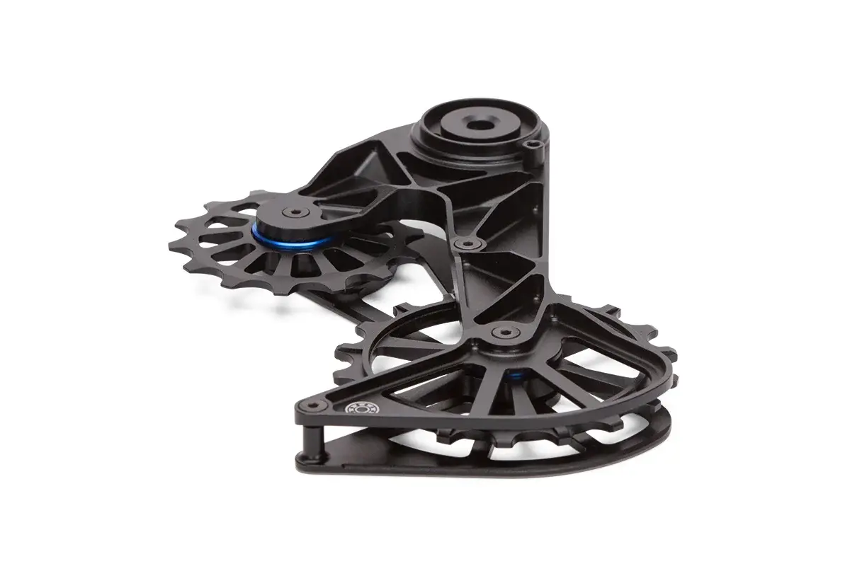 Deze Kolossos Oversized Ceramic Derailleurkooi SRAM Eagle van Kogel biedt de grote precisie en stijfheid die je nodig hebt om de mogelijkheden van je fiets naar een groter niveau te brengen. Oversized derailleurkooien met grote derailleurwieltjes zorgen voor minder kettingafbuiging en langzamere rotaties in de lagers. Dit leidt tot minder wrijving en een efficiëntere krachtoverdracht tussen de benen en de wielen. Met de Kolossos Oversized Ceramic Derailleurkooi SRAM Eagle worden je derailleurwieltjes vervangen door een 14- en 18-tands tandwiel,. Hierdoor kun je met grotere precisie schakelen zodat je ketting langer mee kan! Dit model past alleen op de mechanische en AXS versies van XX1, X01 en GX Eagle derailleurs.