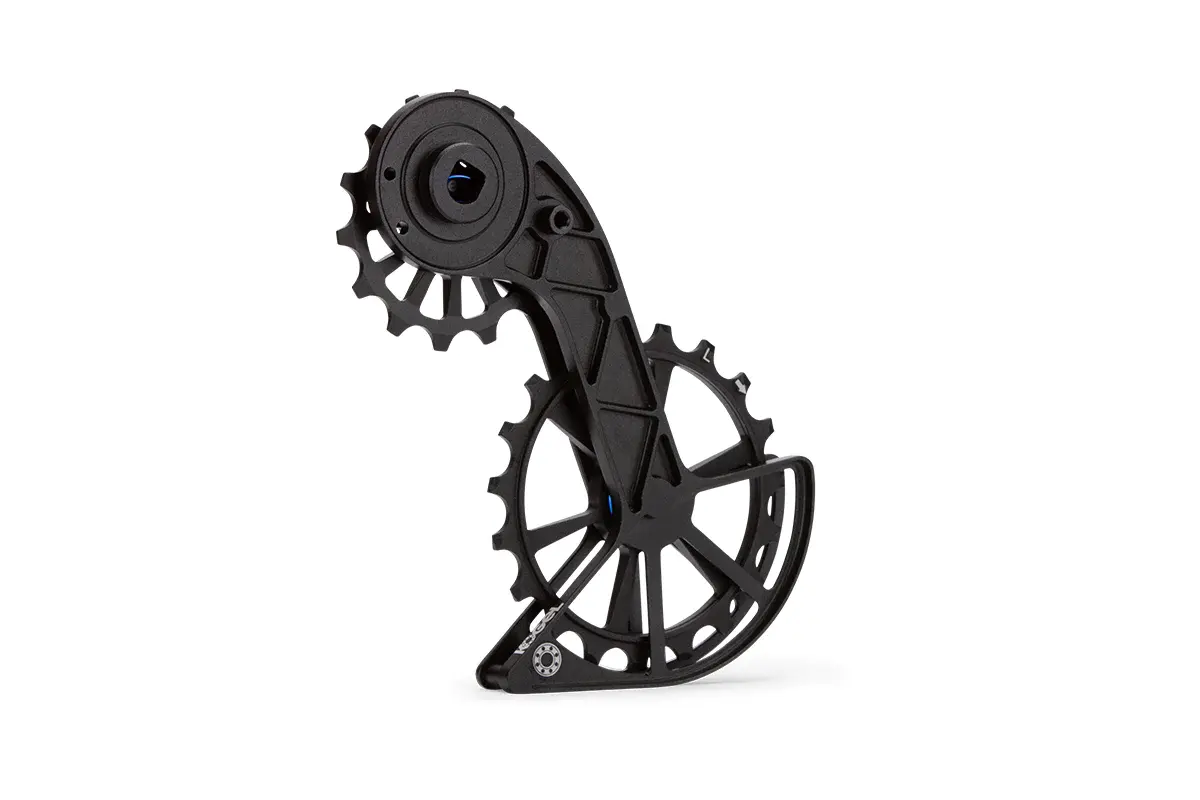 Deze Kolossos Oversized Ceramic Derailleurkooi SRAM eTap AXS van Kogel biedt de grote precisie en stijfheid die je nodig hebt om de mogelijkheden van je fiets naar een groter niveau te brengen. Oversized derailleurkooien met grote derailleurwieltjes zorgen voor minder kettingafbuiging en langzamere rotaties in de lagers. Dit leidt tot minder wrijving en een efficiëntere krachtoverdracht tussen de benen en de wielen. Met de NAAM worden je derailleurwieltjes vervangen door een 14- en 19-tands tandwiel,. Hierdoor kun je met grotere precisie schakelen zodat je ketting langer mee kan! Dit model past op alle Sram Force eTap AXS derailleurs en op de Sram Red eTap 11-speed A2 derailleur.