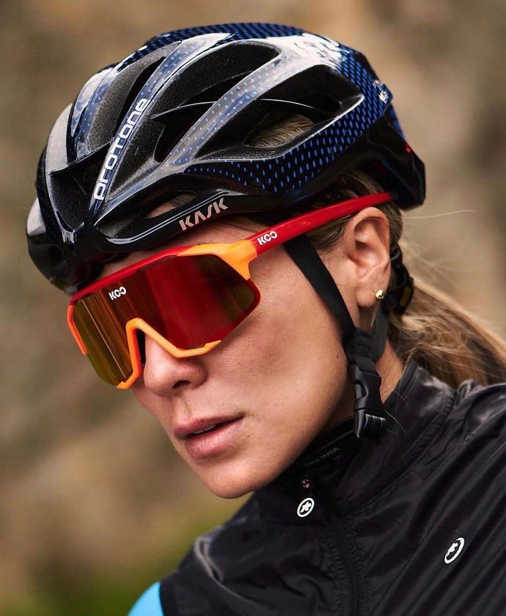 De Demos sport zonnebril van KOO met een innovatief Italiaans frame is gemaakt voor de modebewuste en prestatiegerichte renner. De zonnebril is ontworpen met een enkele panoramische lens. Om te voorkomen dat de bril beslaat zijn er vier ventilatiepoorten rondom de lens geplaatst. De pootinzetstukken zijn van antislip MEGOL-elastomeer, dat ervoor zorgt dat de bril goed rond je hoofd blijft zitten. De zachte rubberen neuspad is verstelbaar in twee standen en opklapbaar. Daarnaast wordt de bril geleverd met een extra neusbrug. Het stijlvolle design wordt afgemaakt met de stevige en krasvaste Zeiss lenzen van polycarbonaat. De Zeiss anti-reflecterende technologie verbetert de efficiëntie van de lenzen. De coating elimineert reflecties van de voor- en achterkant, zodat je ogen het meeste licht ontvangen en het contrast en de details verbeteren. Deze Demos komt met een Red Mirror lens. De Red Mirror lens is gemaakt voor dagen met helder weer en laat 23% licht door.