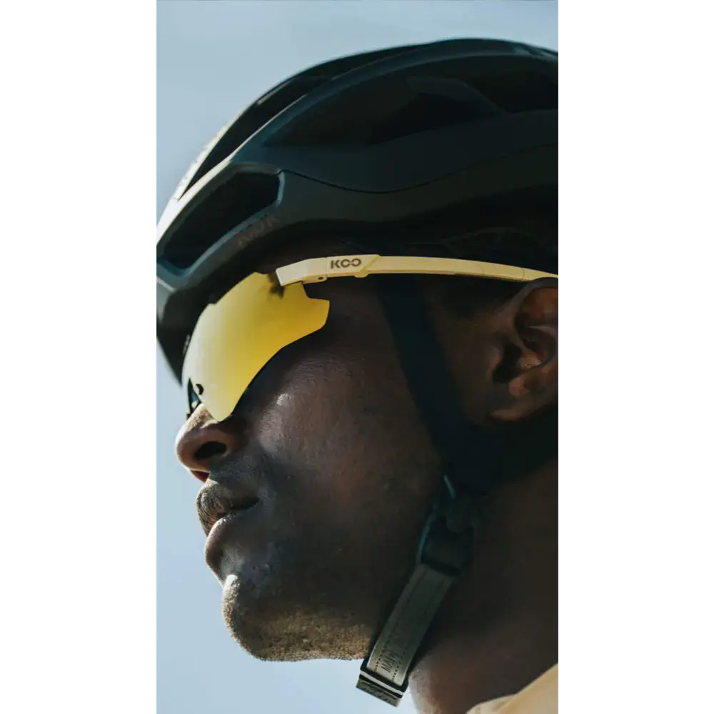 De Koo Nebula Sport Zonnebril met Gold Mirror Lens is een ultralichte frameloze bril die perfect is voor sportieve uitdagingen op de weg, in het bos of je nou fietst of hardloopt. Met een gewicht van slechts 21 gram biedt deze bril een comfortabel en stabiel draaggevoel, zelfs bij intensieve beweging. Het torische lensontwerp biedt een panoramisch zicht en vervormingsvrije optiek, terwijl de verstelbare neuspads zorgen voor een persoonlijke pasvorm, ook voor mensen met een smallere neusbrug. De bril voldoet aan de hoogste internationale normen en is een stijlvolle keuze voor de serieuze sporter. De Gold Mirror lens kun je gebruiken in heldere omstandigheden.