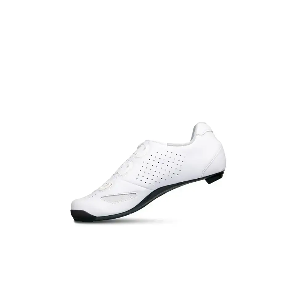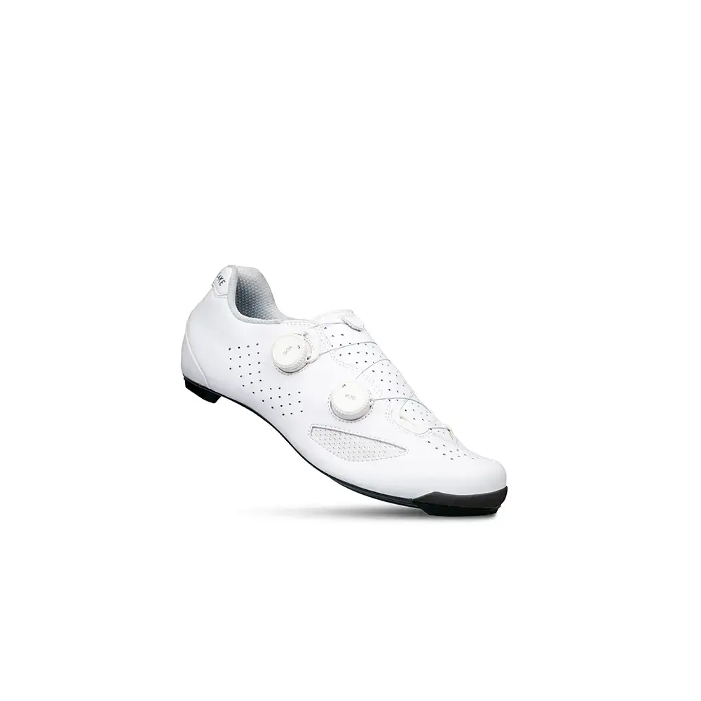 Deze Lake CX239 wielrenschoenen zijn zeer hoogwaardige schoenen voor zeer gedreven wielrenners. Deze schoen is bedoeld voor fietsers met een gemiddelde voetbreedte. Door de zeer stijve carbon zool wordt al je kracht direct op de pedalen gebracht. Het slanke ontwerp sluit nauw om je voeten aan om beweging in de schoen tot een minimum te beperken, maar dankzij de twee BOA sluitingen die wat verder uit elkaar zijn geplaatst, kun je de schoen zo afstellen dat deze nergens knelt. Hierdoor zal je altijd de perfecte pasvorm vinden. Om te zorgen dat je niet te warme voeten krijgt, zijn er perforaties in het bovenwerk aangebracht en extra mesh stukken toegevoegd. Daarnaast helpt de voering met het snel afvoeren van hitte en vocht. Het bovenwerk is gemaakt van slijtvast en waterafstotend Ecco leder dat desondanks wel een hoog ademend vermogen heeft.