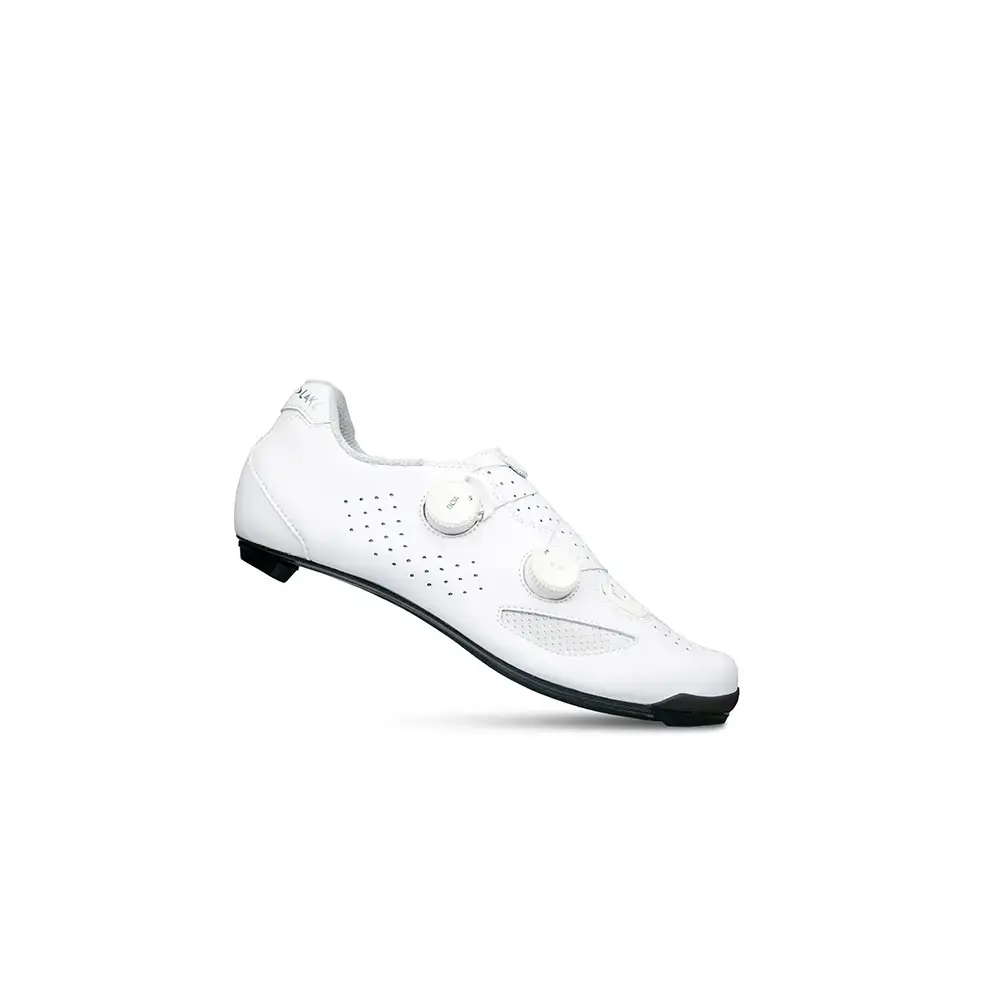 Deze Lake CX239 wielrenschoenen zijn zeer hoogwaardige schoenen voor zeer gedreven wielrenners. Deze schoen is bedoeld voor fietsers met brede voeten. Door de zeer stijve carbon zool wordt al je kracht direct op de pedalen gebracht. Het slanke ontwerp sluit nauw om je voeten aan om beweging in de schoen tot een minimum te beperken, maar dankzij de twee BOA sluitingen die wat verder uit elkaar zijn geplaatst, kun je de schoen zo afstellen dat deze nergens knelt. Hierdoor zal je altijd de perfecte pasvorm vinden. Om te zorgen dat je niet te warme voeten krijgt, zijn er perforaties in het bovenwerk aangebracht en extra mesh stukken toegevoegd. Daarnaast helpt de voering met het snel afvoeren van hitte en vocht. Het bovenwerk is gemaakt van clarino microvezels.
