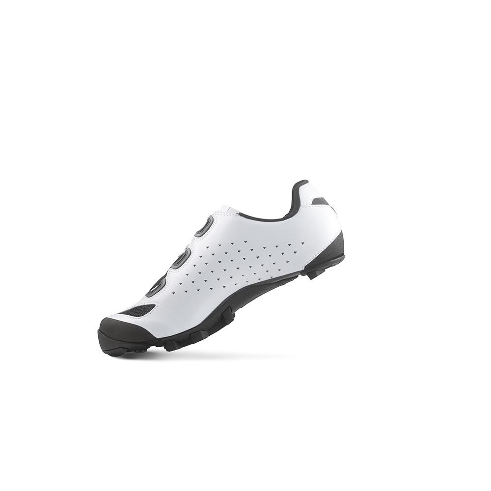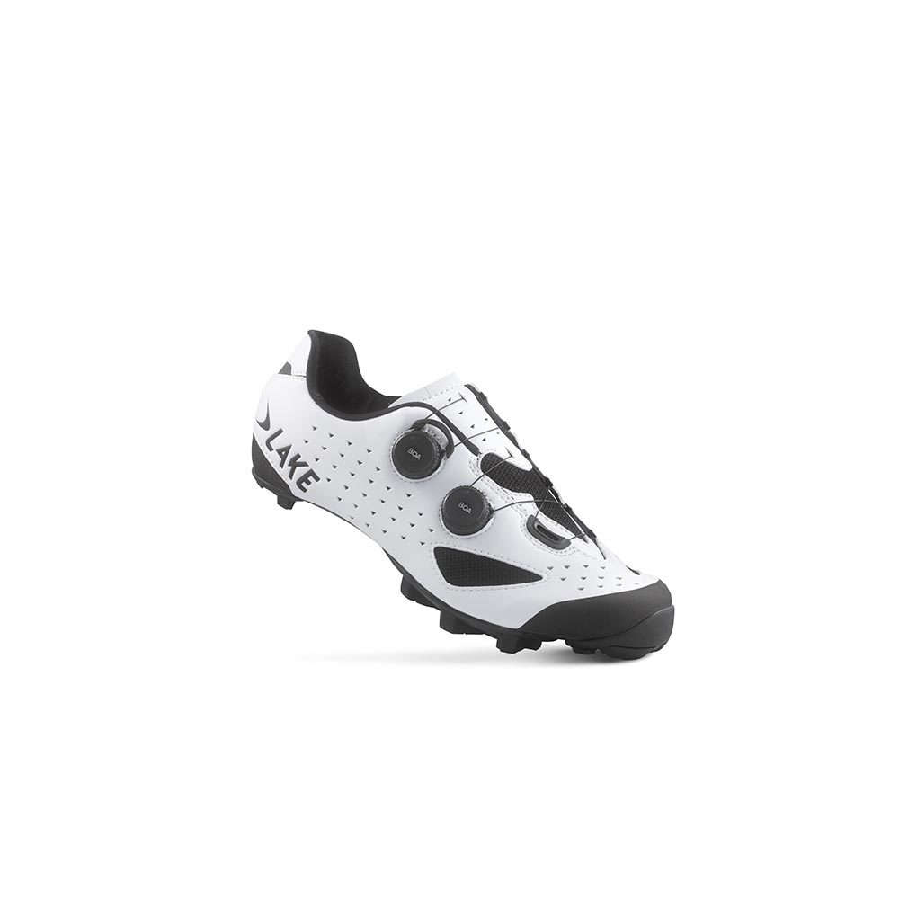 Deze Lake MX238 Wide mountainbikeschoenen zijn zeer hoogwaardige schoenen voor zeer gedreven cyclocrossers, cross country mountainbikers en gravelaars. Deze schoen is bedoeld voor fietsers met brede tot zeer brede voeten. Deze wide versie is vooral breder rond de middenvoet. Door de zeer stijve carbon zool wordt al je kracht direct op de pedalen gebracht. Het slanke ontwerp sluit nauw om je voeten aan om beweging in de schoen tot een minimum te beperken, maar biedt wel voldoende ruimte om afknelling te voorkomen tijdens stukken waar je even moet rennen in een wedstrijd. Als aanvulling beschikken de schoenen over twee BOA sluitingen welke zeer precies af te stellen zijn. Hierdoor zal je altijd de perfecte pasvorm vinden. Om te zorgen dat je geen té warme voeten krijgt, zijn er perforaties in het bovenwerk aangebracht en extra mesh stukken toegevoegd. Daarnaast helpt de voering met het snel afvoeren van hitte en vocht. Het bovenwerk is gemaakt van slijtvast en waterafstotend leder met extra Aramide stukken op de meest blootgestelde delen zoals de hiel. De rubberen onderzool biedt veel grip in modderige omstandigheden, ideaal tijdens een wedstrijd waarbij je ook af en toe van de fiets af moet.